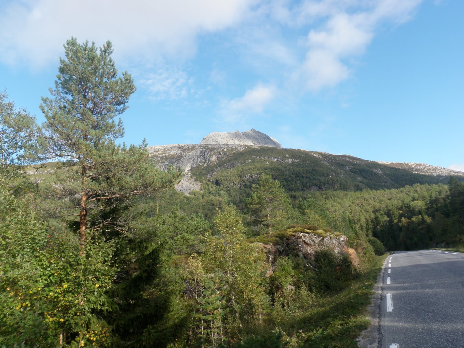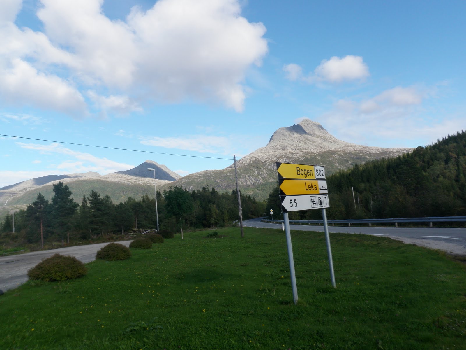Idag började jag med att cykla till Vennesund varifrån jag tog färjan till Holm, sedan passerade jag Heilhornet som jag tyvärr inte kunde gå upp på. Vega måste vila så att tassarna läker helt. Men toppen finns kvar och fler chanser kommer! Sen cyklade jag till Bogen där jag vek av på väg 771 för att ta mig till färjeläget i Gutvik. Där tog jag färjan till Leka. Det har varit förhållandevis lättcyklat idag, egentligen var det bara en längre uppförsbacke.