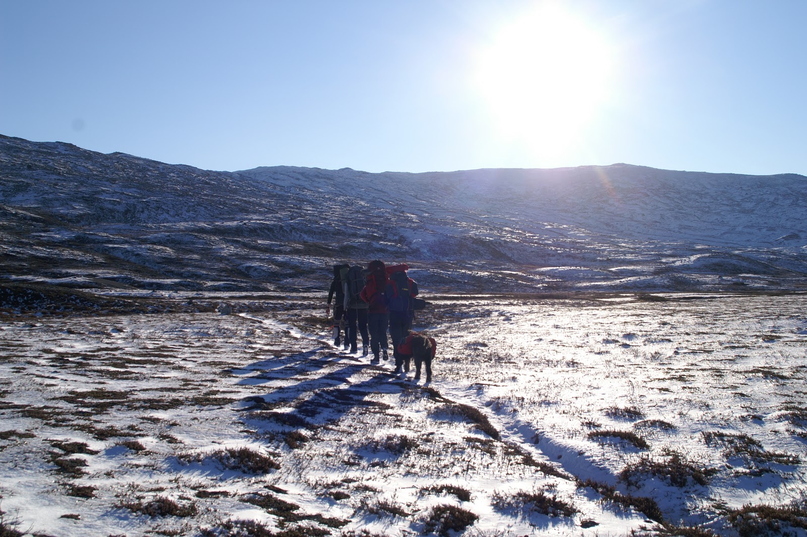 På väg upp mot passet med Gröndalen bakom oss. |