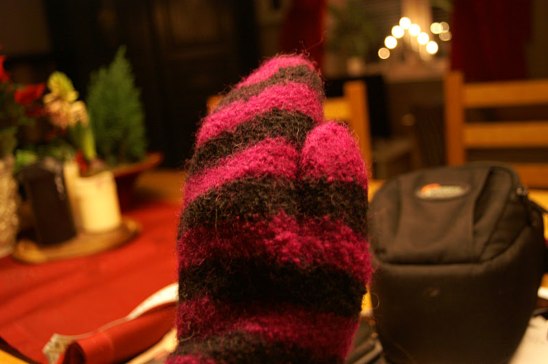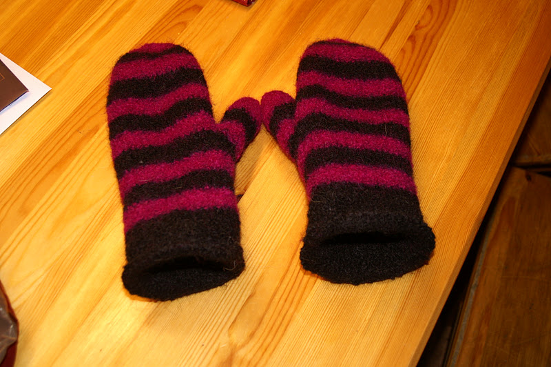 För att inte frysa om händerna har jag stickat ett par vantar som jag sedan maskintovade.
