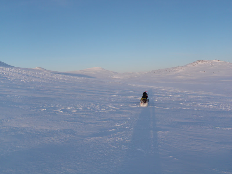 Varje kväll följer "spoten" för att se var ni befinner er. Höjdpunkten blir när du skriver hur det har varit under etappen. Jag hoppas att vädret är på din sida framöver med mycket sol och bra före. Hur skulle det vara med en något längre pulka för att få ned tyngdpunken så den inte tippar så ofta, bara en fundering jag får.