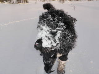 Sov gott i natt, men för lite. Vega väckte mig redan för 06.00. Hon ville ut, jaha tänkte jag, hon måste väl få gå ut då. Men jag blev allt lite irriterad när jag upptäckte anledningen till varför hon ville gå ut. Hon ville äta snö. För vatten det duger inte åt Vega längre, det är bara snö hon vill ha. Hon hade vatten stående inne hos oss, men nej. Vatten vill hon inte dricka, får aldrig i henne vatten längre. Men snö…