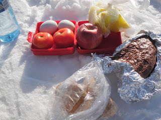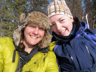 Även idag fick jag en dag med strålande väder! Jag började med att skida över Lill-Kingen, sen över halva Stor-Kingen. Från Stor-Kingen ”genade” jag över till Lilltjärnen, inte helt lätt i tät skog, men det gick bra. Sen skidade jag över Stortjärnen och sen bort till Skogsjön. Där väntade Maren! Så himla roligt och mysigt att träffa henne igen! Jag blev så glad! Hon hade med sig lunch till mig ockå, jag fick frukt och grönt, ägg och bröd, samt kaka hon bakat! Vi satt där i solen och hade det gott en stund innan vi tillsammans skidade ner till Rengen, där jag mötte upp Rune och Birgitta som jag får bo hos i natt och imorgon natt. Jag kan verkligen inte säga det för många gånger, det finns så många vänliga, öppna och varma människor! På kvällen kom Olle hit som hjälpte mig att fixa till pulkan samt lite annat. Nu ska jag prova en annan typ av skaklar, några som är lite mer styva. Rune och Birgitta för husrum! Tack Olle för all hjälp! Tack Valsjöbua för de nya ullsulorna! Tack Maren för att du stannade kvar en extra dag så att jag fick träffa dig!
