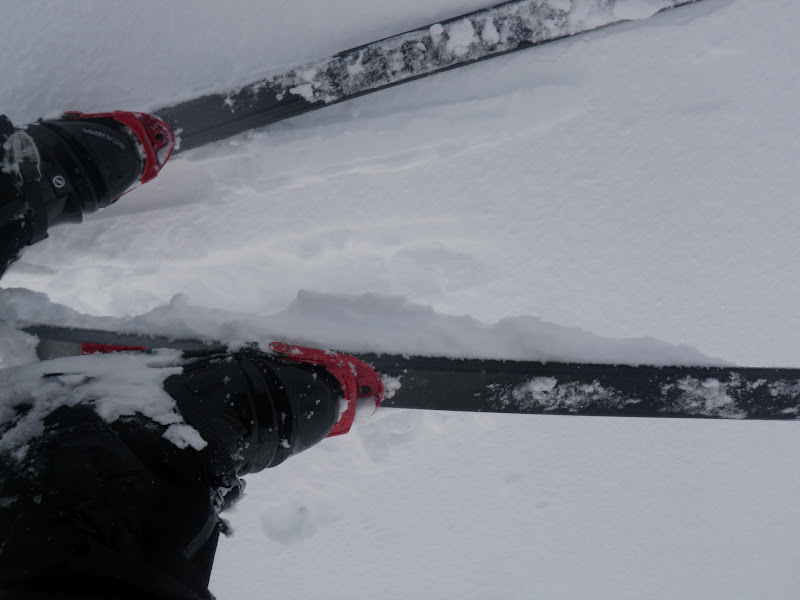 En dag som denna hade jag ingen lust att plocka fram kameran, det enda jag tog kort på var snön som fastnade underskidorna. Idag har det varit lite lurigt att åka utför. Först var snön sträv som sandpapper och sen med styltor under fötterna, kunder det när som helst ta tvärnit och det gjorde det också..