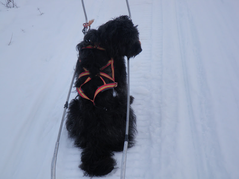 Lykke är så söt, idag när han började bli trött klättrade han upp på Vegas pulka och lade sig 🙂 Vega och Lykke går för övrigt jättebra tillsammans!