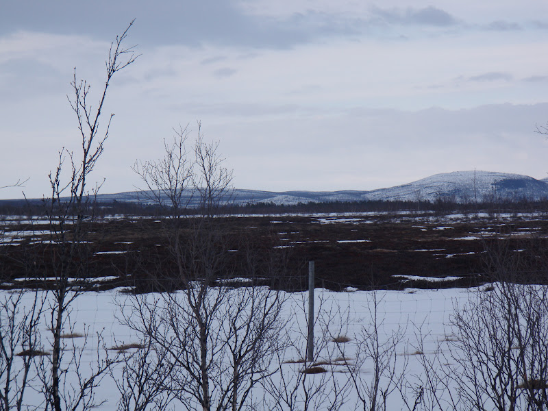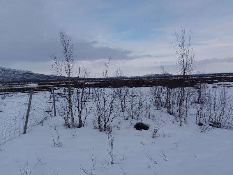 Vi började dagens etapp med att gå resterande delen av Torneträsk. Det var torrt och fint på isen till att börja med, men utefter dagen blev det allt mer blött på isen. Men inte så att det ställde till något besvär för oss. Sen fortsatte vi över myren Gurasáhpi över till sjön Coagesjávri där vi slagit läger. När vi kom till Torneträsks östra ände, eller Láimoluoktas, egentligen som den nordöstra delen av Torneträsk heter, så var vi ett tag lite osäkra på om vi skulle kunna ta oss vidare. För där fanns ingen snö. Vi följde därför vägen som var trampad av skoter ner mot Kattuvuoma. Men efter lite drygt en kilometer gick ett gammalt skoterspår över myren, vilket det fortfarande fanns lite snö på, så vi kunde ta oss fram på det. Efter ca 1,5 km kom snön tillbaka. Men som det varit plusgrader var den snön väldigt rutten och svårframkomlig. Vega har visat prov på hur stark hon blivit, trots att nästan hela hon sjönk ner i snön vissa sträckor kämpade hon och tog sig fram helt själv!