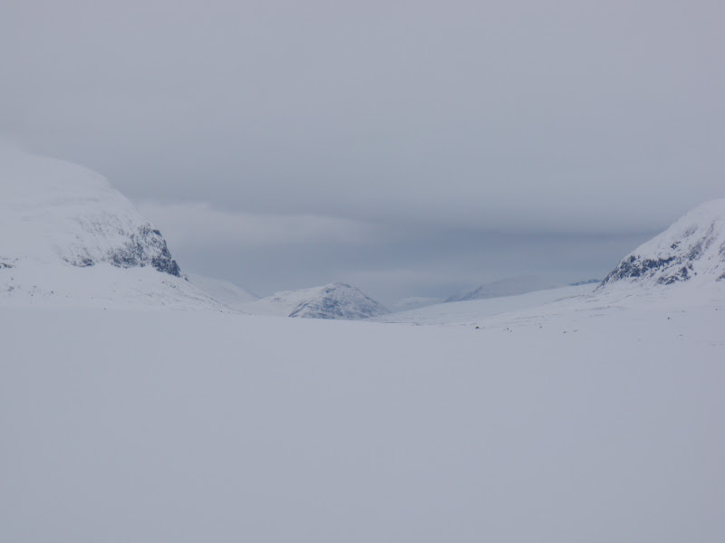 När vi kom fram till Gevccasjávri trodde vi nästan att vi sett fel på kartan och gått upp fel dalgång och hamnat nånstans utanför kartan. För där var en hel landsby (sameviste). På kartan finns 2 hussymboler. På plats finns det hur många som helst. Samtidigt som vi kom fram dit drog det in dåligt väder. På bara någon minut försvann sikten helt och det började blåsa kraftigt. Vi gick på kompasskurs i ca 3 km innan vi beslöt oss för att skynda oss upp med en lämur för att kunna slå upp vårt läger. Då var vi riktigt blöta av snöblandat regn som piskat sig in överallt av vinden som vi hade rakt emot oss.