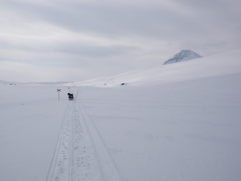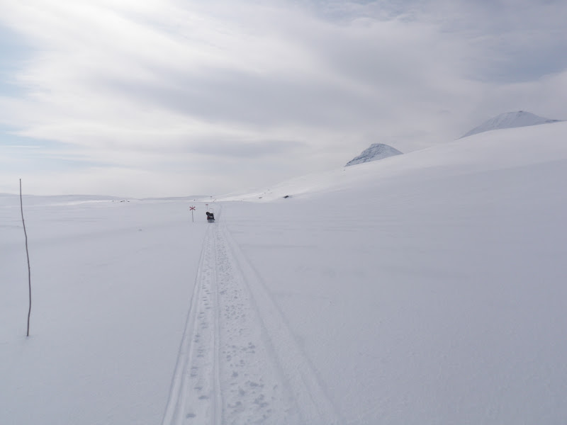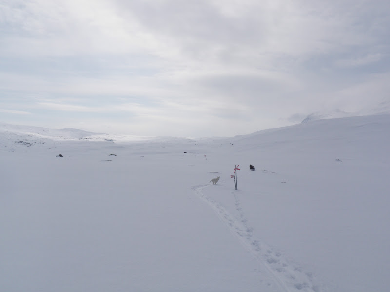 På andra sidan passet på väg ner mot Gappohytta träffade vi 2 finskor, bitvis kunde vi följa deras spår.