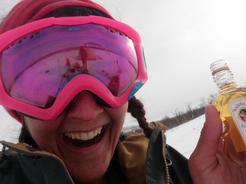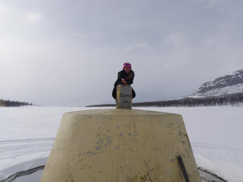 Helt platt har vi skidat denna sista dag, 10 km till Kilpis men i början av byn fanns bara en camping och ett vandrarhem som var stängt för säsongen. Vi fick därför skida ytterligare 5 km för att komma till mataffären. Alldeles innan vi skulle vika av från sjön träffade vi en finländsk man som var där på skidsemester. Han hjälpte oss att hitta bästa vägen upp till affären och sen bjöd han oss på lunch på restaurangen där. Tack! Han ordnade också så att jag skulle få lämna pulkorna i ett av butikens förråd i väntan på att pappa kommer med cykeln och kan ta dem med ner. Det råkade jag sedan sabba. Jag visste inte om den lilla detaljen att man inte får slänga saker i en soptunna vid en bensinstation. Jag hade en påse med emballagen från de frystorkade rätterna som jag gick för att slänga där. Då kom en mycket arg skrikande finsk man ut (visade sig vara föreståndaren) och sa att jag inte fick slänga något där. Hans engelska var inte så bra.Det var riktigt obehagligt han stod där och skrek samtidigt som han filmade och hotade med polis. Inför kameran var jag tvungen att helt klargöra vad den låg i påsen och efter det fick jag inte längre lämna pulkorna där. Intressant. Bensindunken som var tom fick jag absolut inte lämna där, kan du inte läsa skrek han?! Det står statoil på din dunk, ser det här ut att vara en statoilstation för dig. Vilket slut på turen. Så till alla andra som tänkt gå igenom där, passa er. Han är inte att leka med den mannen.
