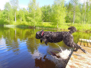 I Hemmingsmark slog vi upp tältet på en badplats. Så i morse blev det säsongens första dopp. Det var inte så kallt som jag först hade trott att det skulle vara i vattnet. När man sedan kom upp ur vattnet var det så pass varmt att man kunde sitta och sola utan att frysa ihjäl! Vega är en modig flicka, hon kastade sig rakt ut från bryggan och började simma. Flera gånger gjorde hon det dessutom.