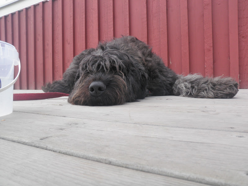 Vi har följt ”Kustvägen” hela dagen, den går bitvis längs grusväg. Den sträckan var dock hård och fin så det var inga som helst problem. Temperaturen har sjunkit (ingen är gladare än vi) och det har som sagt varit molnigt. Det gjorde att Vega inte längre ville åka i kärran. Fullt förståelig då hon inte gjort annat än att sitta där dagarna innan som det varit för varmt för henne att springa bredvid. Hon hade med andra ord en hel del överskottsenergi, men den har hon fått göra sig av med idag. Vet inte hur långt hon sprungit idag, men över 20 km i alla fall.
