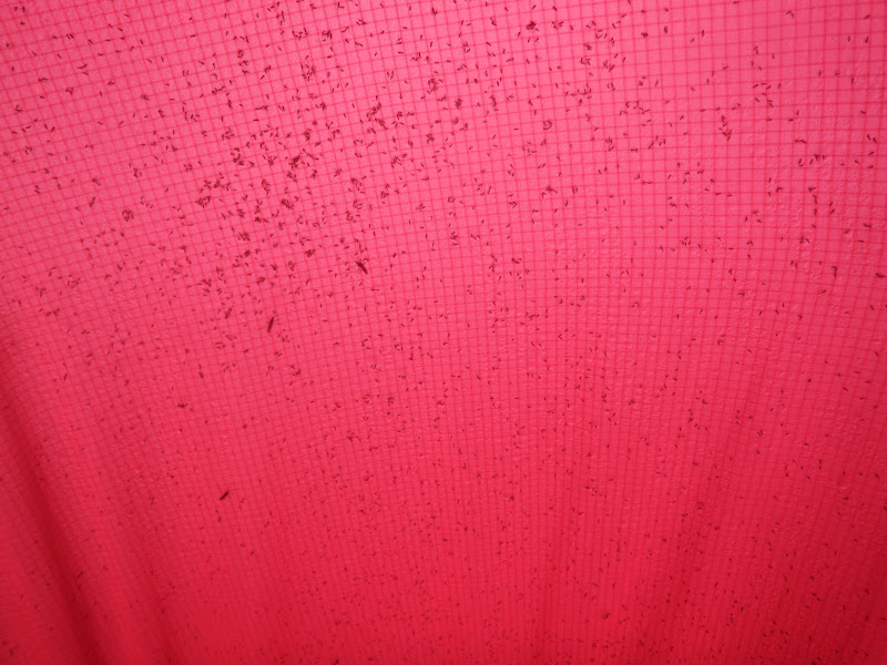 Vi vaknade till en grå dag. Luften var tung och kvav. Tältduken är inte längre röd, den har färgats svart av gårdagens knott. Vi kunde inte äta någon frukost innan vi startade pga alla knott, så den fick vänta tills vi kom till Strömsbruk. Där satt vi oss vid en parkbänk, kokade upp vårt vatten och fixade med maten. Det kändes inte som det mest levande samhället vi kommit till direkt, om man ska uttrycka det fint. Men mygg- och knottfritt var det iaf 🙂