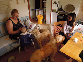 Sen cyklade vi på vidare till Håcksta (närheten av Hudiksvall, ut mot Hornslandet). Där hade jag kläder och hundmat som väntade hos dem Mamma ska köpa en Golden Doodle valp ifrån. Den var verkligen supersöt! 🙂 Medan vi var där kom regnet, det fullkomligt öste ner och det var sedan ihållande.