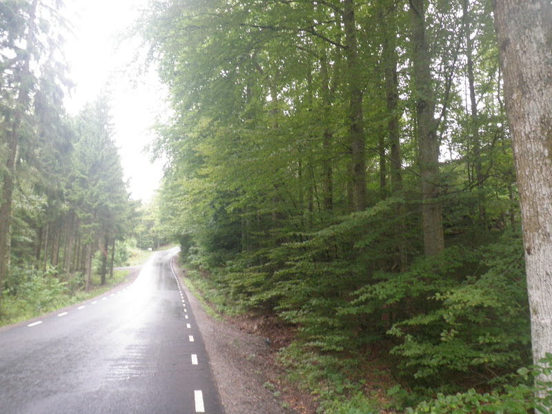 Jag hade i alla fall sådan tur att det var uppehåll medan jag packade ihop tält och prylar. Jag han däremot inte mer än sätta mig på sadeln så började det regna igen, det höll i sig i stort sett resten av dagen.