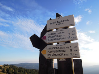 hakade lös cyklarna och började cykla mot toppen Králický Sněžník. De första 4,5 km dit