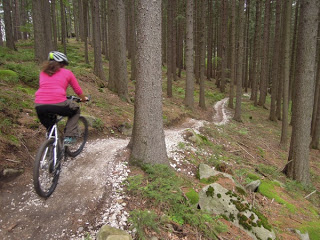 många mil med tillrättalagda cykelspår i olika svårighetsgrader. Vi cyklade ett