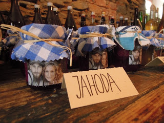 Som minne från bröllopet fick alla med sig antingen sylt, saft eller vin hem som brudparet hade gjort. |