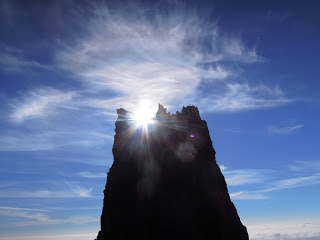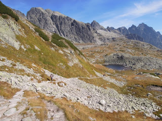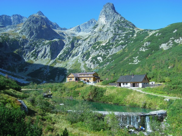 Ju längre vi gick desto brantare blev det. Chata (betyder stuga) pri Zelenom plese var den första stugan vi passerade, det finns flera stugor man kan övernatta i här i Tatrabergen, det är bra som det är helt förbjudet att tälta här, precis som i alla nationalparker i Tjeckien och Slovakien. Nästa ställe vi passerade var Skalnate Pleso, som är ett observatorium och också en anhalt för en linbana som går hela vägen upp till Lomnicky toppen, 2634 möh. Häromkring var det med andra ord helt fullt med turister.