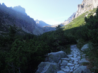 Vi vaknade till en helt fantastisk dag, Tatrabergen mot en helt molnfri himmel! Det var som att kolla direkt på ett vykort. Efter att ha packat våra ryggsäckar började vi vår vandring upp mot Chata pri Zelenom plese. Där vek vi av till Skalnate pleso. Vi började med att gå genom ett skogslandskap. 2004 var det en väldigt kraftig storm i Tatraområdet, den gav upphov till stora kalområden.