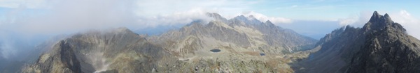 Sen beslöt vi oss för att ta oss upp på ytterligare en topp, Vychodní Vysoká, 2428 möh. Så högt upp har jag aldrig varit till fots tidigare 🙂 Vi hade lite otur med sikten, för hela dagen hade vi strålande sol på en helt blå himmel. Men just som vi närmade oss toppen drog moln in. Men som tur var kom de och gick hela tiden så vi fick en 360-gradig utsikt över en enastående nästan overklig natur.