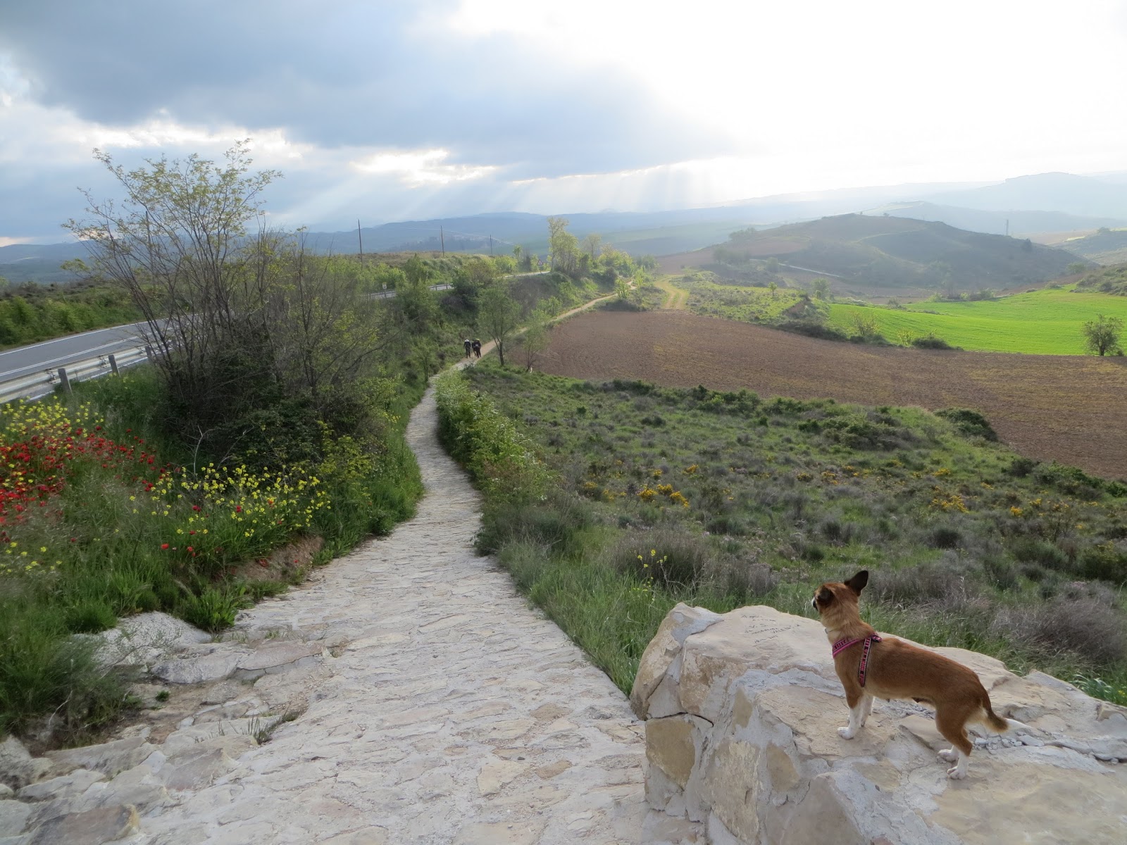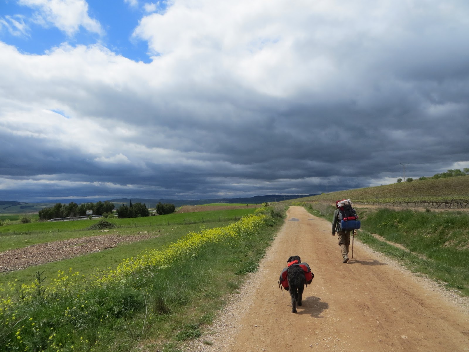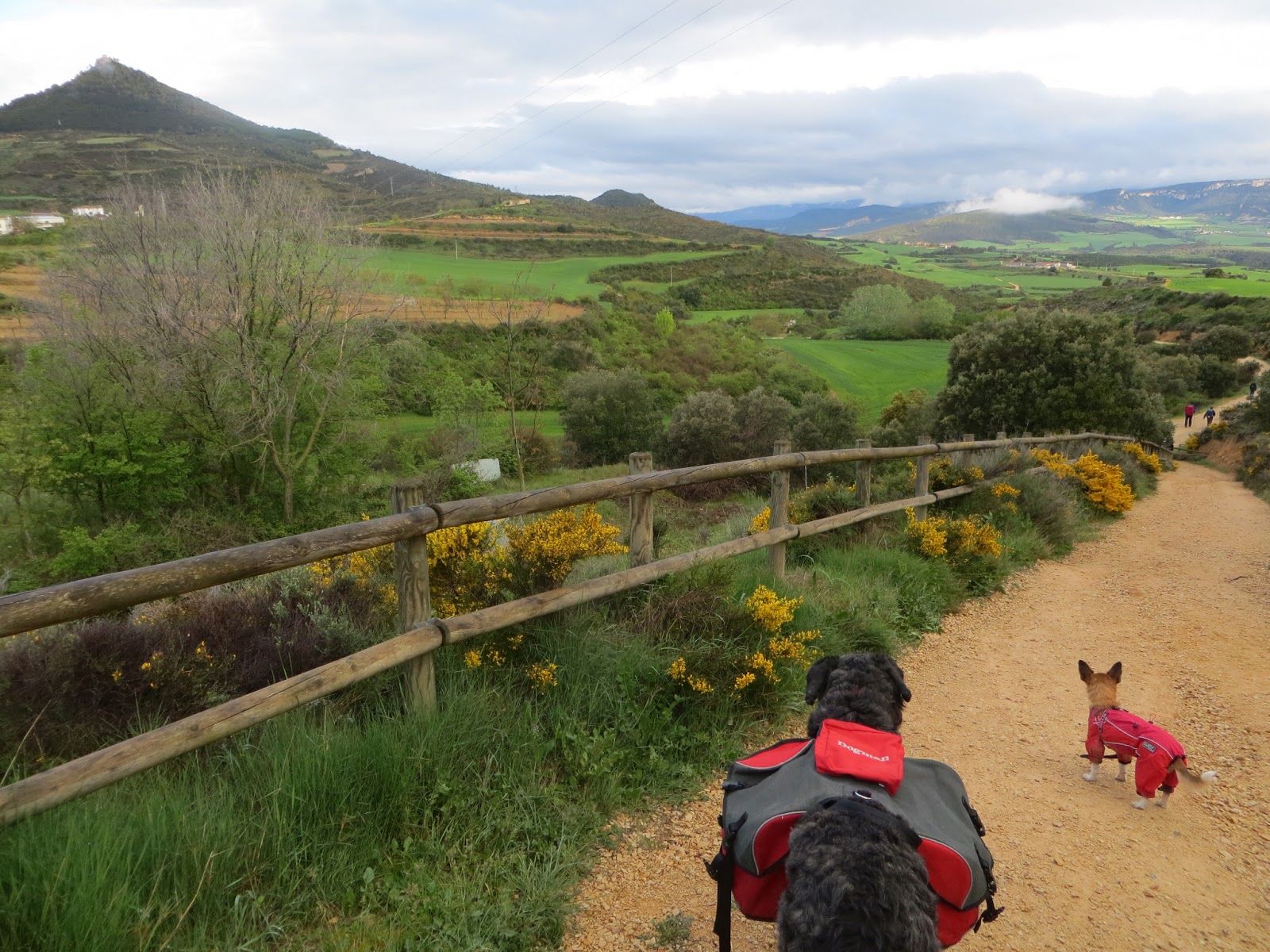 Det har varit rätt så tungt att gå idag, pga av att cirka halva sträckan gick längs asfalterade vägar. Det är hårt för alla kroppens leder. Att ryggsäcken väger ca en tredjedel av min vikt gör kanske också sitt. Det har varit en rätt så¨kuperad sträcka. Men det är lite gött det med, variation förnöjer. Vi kom fram till Logrono rätt så tidigt idag. För att både jag och hundarna skulle få ila tog jag in på ett hostell. Tror verkligen att mina fötter behöver det, undrar lite när mina småtår kommer att bli sig själva igen. Båda är dem helt täckta av blåsor, den högra börjar i tillägg att byta färg :/ Blir det sämre måste jag nog uppsöka läkare. Jag var iaf till ett apotek idag och skaffade nya sulor till kängorna så att hålfoten ska få lite mera stöd. Hoppas att det kommer att fungera så kanske jag slipper så trötta fotleder, knän och höfter.