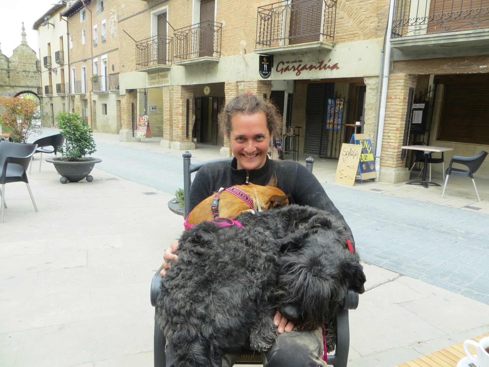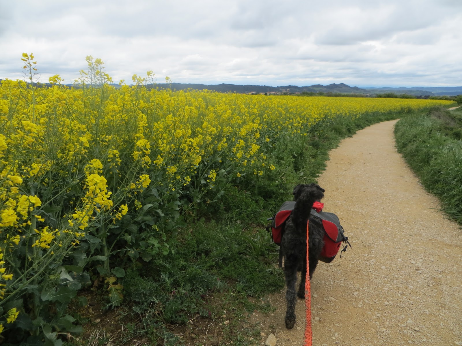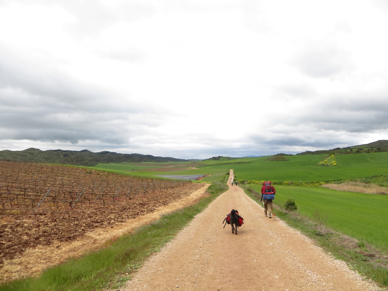 Det har varit rätt så tungt att gå idag, pga av att cirka halva sträckan gick längs asfalterade vägar. Det är hårt för alla kroppens leder. Att ryggsäcken väger ca en tredjedel av min vikt gör kanske också sitt. Det har varit en rätt så¨kuperad sträcka. Men det är lite gött det med, variation förnöjer. Vi kom fram till Logrono rätt så tidigt idag. För att både jag och hundarna skulle få ila tog jag in på ett hostell. Tror verkligen att mina fötter behöver det, undrar lite när mina småtår kommer att bli sig själva igen. Båda är dem helt täckta av blåsor, den högra börjar i tillägg att byta färg :/ Blir det sämre måste jag nog uppsöka läkare. Jag var iaf till ett apotek idag och skaffade nya sulor till kängorna så att hålfoten ska få lite mera stöd. Hoppas att det kommer att fungera så kanske jag slipper så trötta fotleder, knän och höfter.