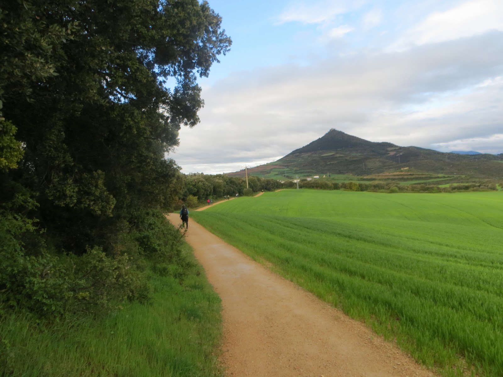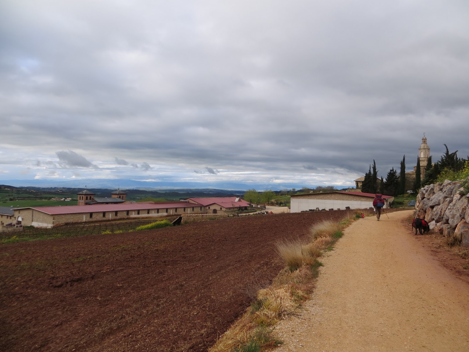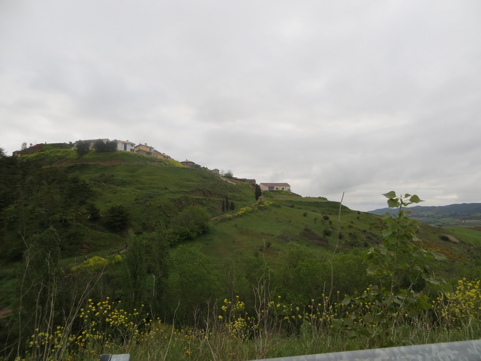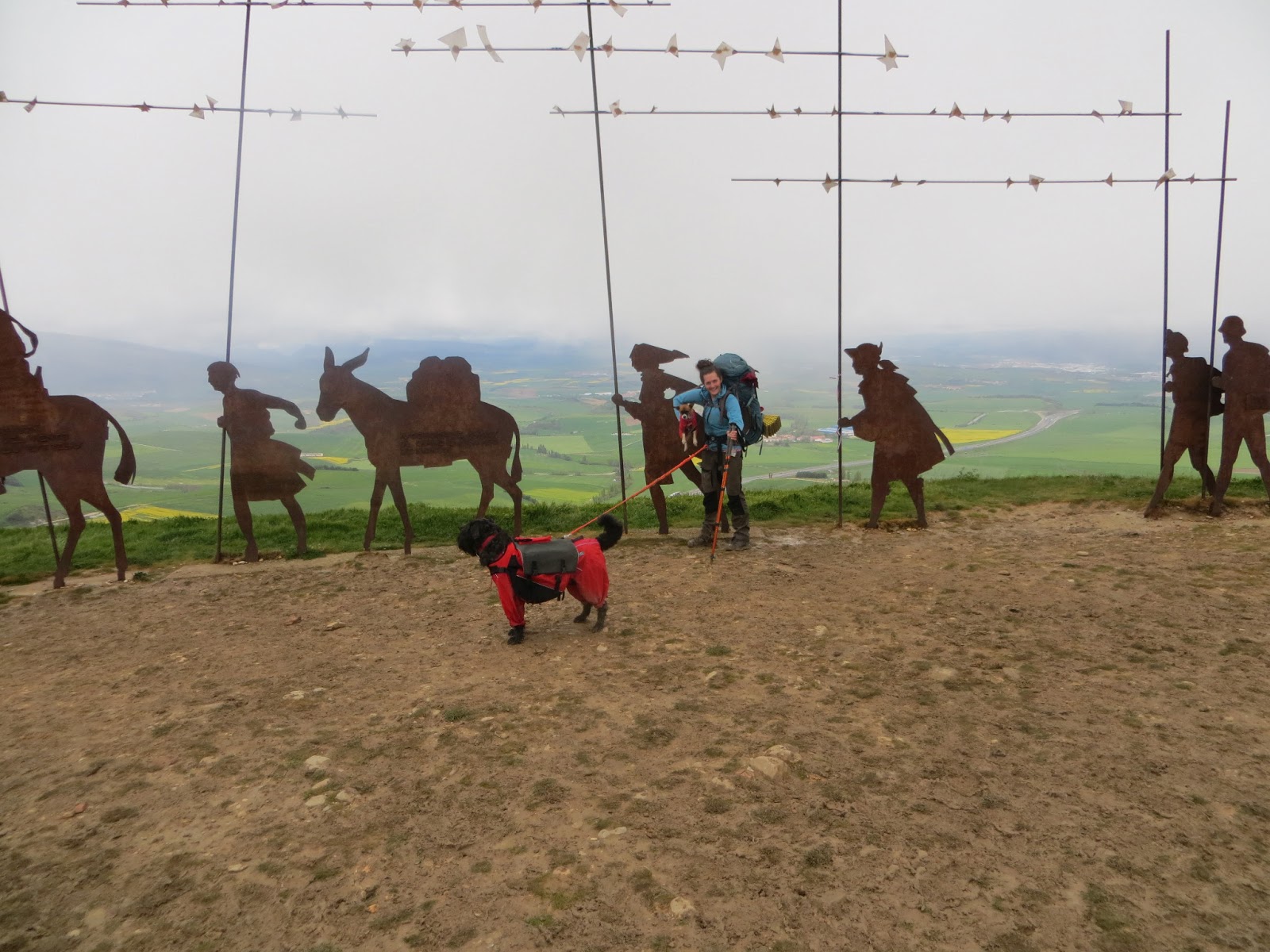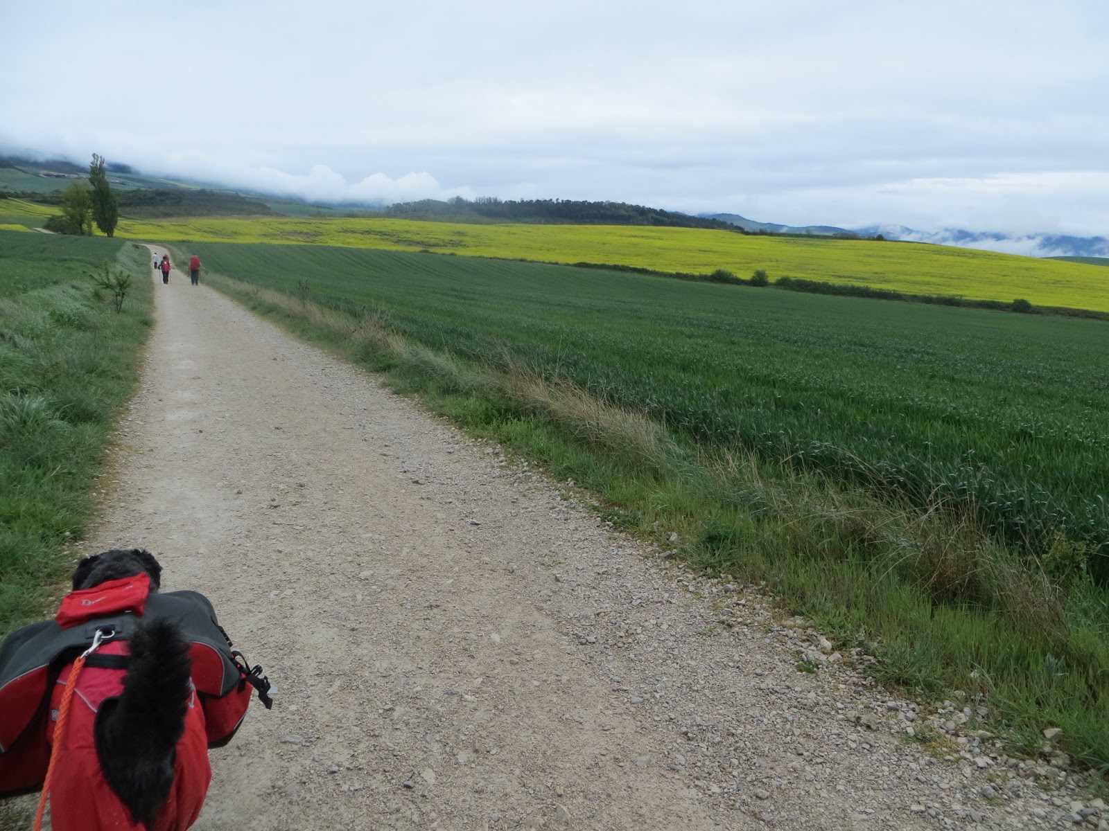 Dagen började med vandring genom enorma rapsfält och ängar, sedan upp mot Monte del Perdón där står det skulpturer i järn på gamla pilgrimer. Vägen upp var rätt så brant och för att göra det hela ännu lite jobbigare så var det så lerigt att skorna satt sig fast samtidigt som man hela tiden drogs lite bakåt.