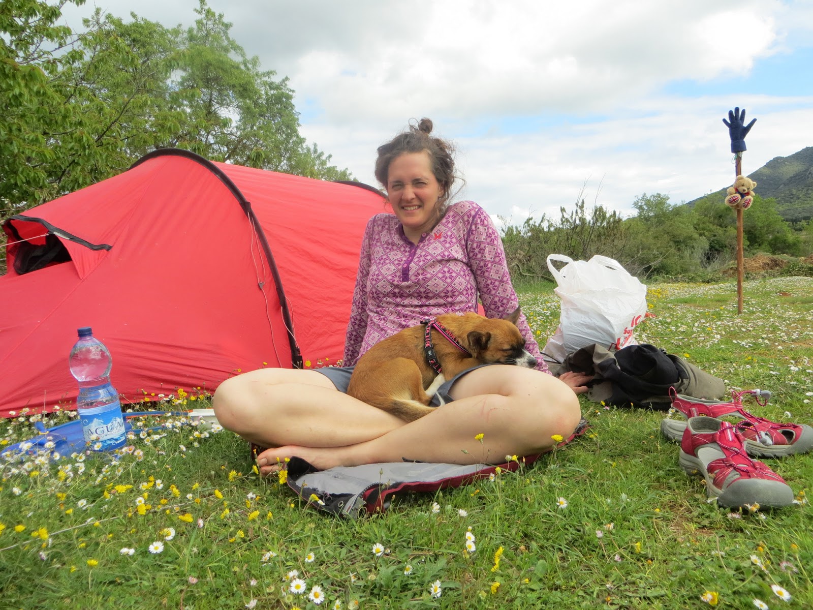 Nattens läger är mellan en olivodling och ett vinplantage med utsikt över ett vackert berg åt ena hållet och ytterligare en vinodling åt det andra.