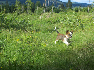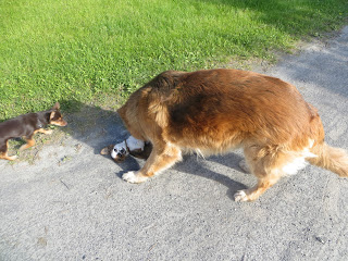 Bus i solen 17 juni 2013 Idag fick vi träffa lilla Soffie igen! Gerda tittade förbi en sväng 🙂 Vädret var betydligt bättre idag, så alla hundar lekte och busade. Kan min mamma ligga på Vega så kan jag sitta på henne.