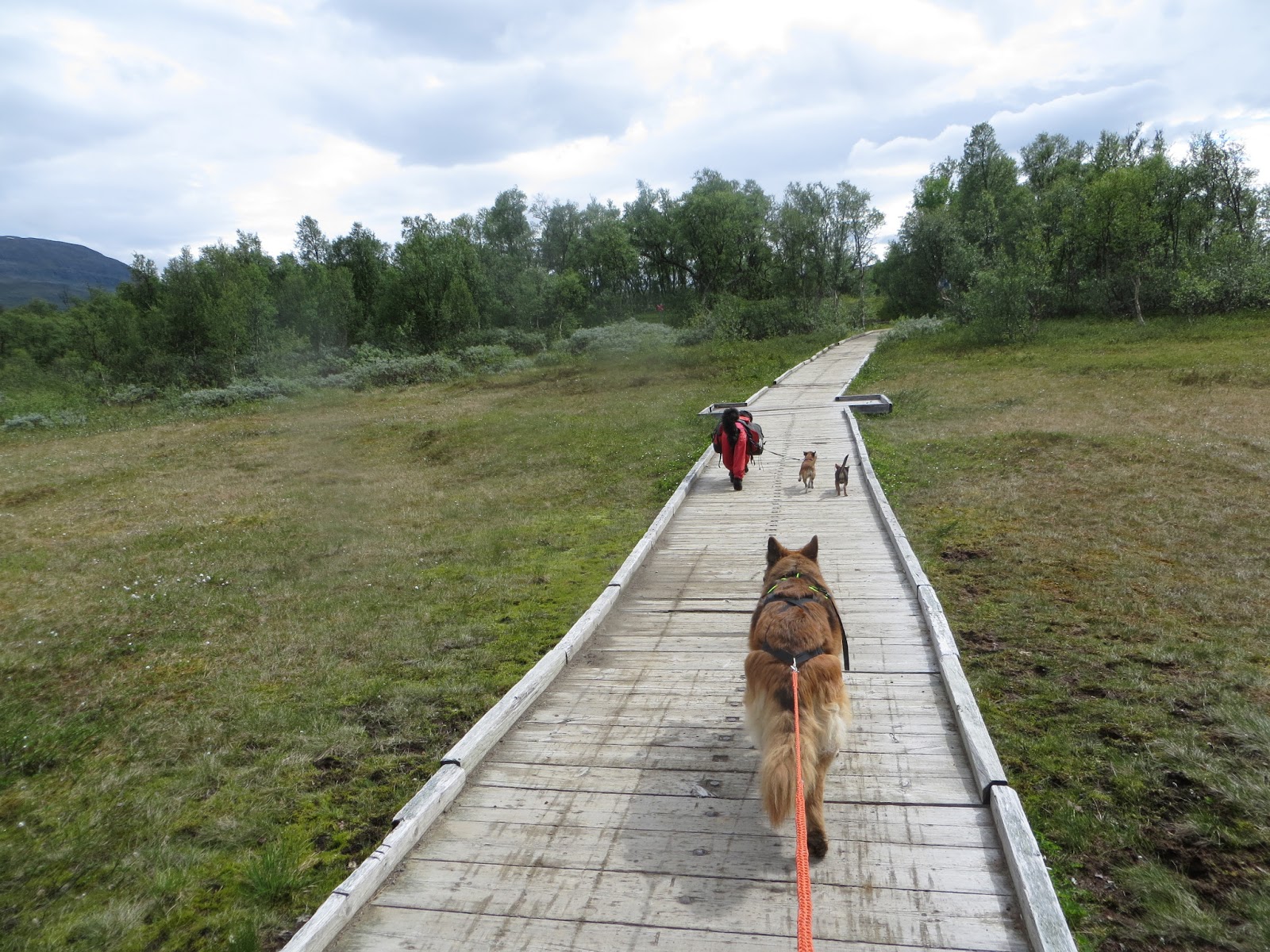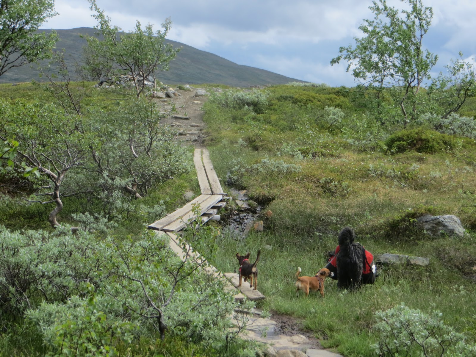 Hur som haver så vandrade jag med Anders Sahlin, Sara Björk och Malin Göransson upp till Sylarnas fjällstation på midsommardagen. Alla hundar var så klart med.