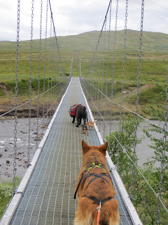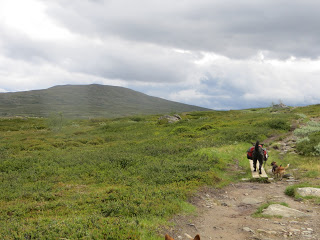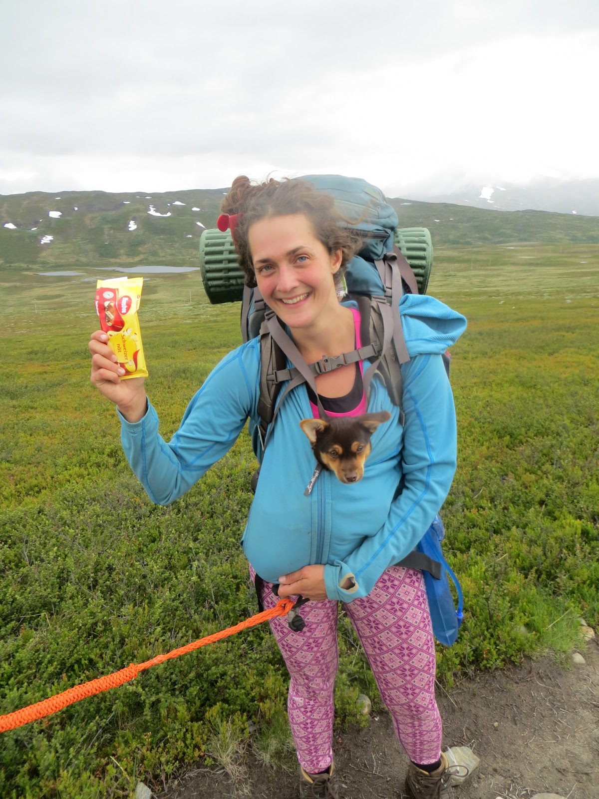 Det ska börjas i tid heter det ju, så lika bra att ta med Bounty på fjälltur så tidigt som möjligt. För alla som tänker redan här att det inte är bra för valpar att gå mycket kan jag lugna. Bounty gick INTE hela vägen själv, hon blev buren en hel del.