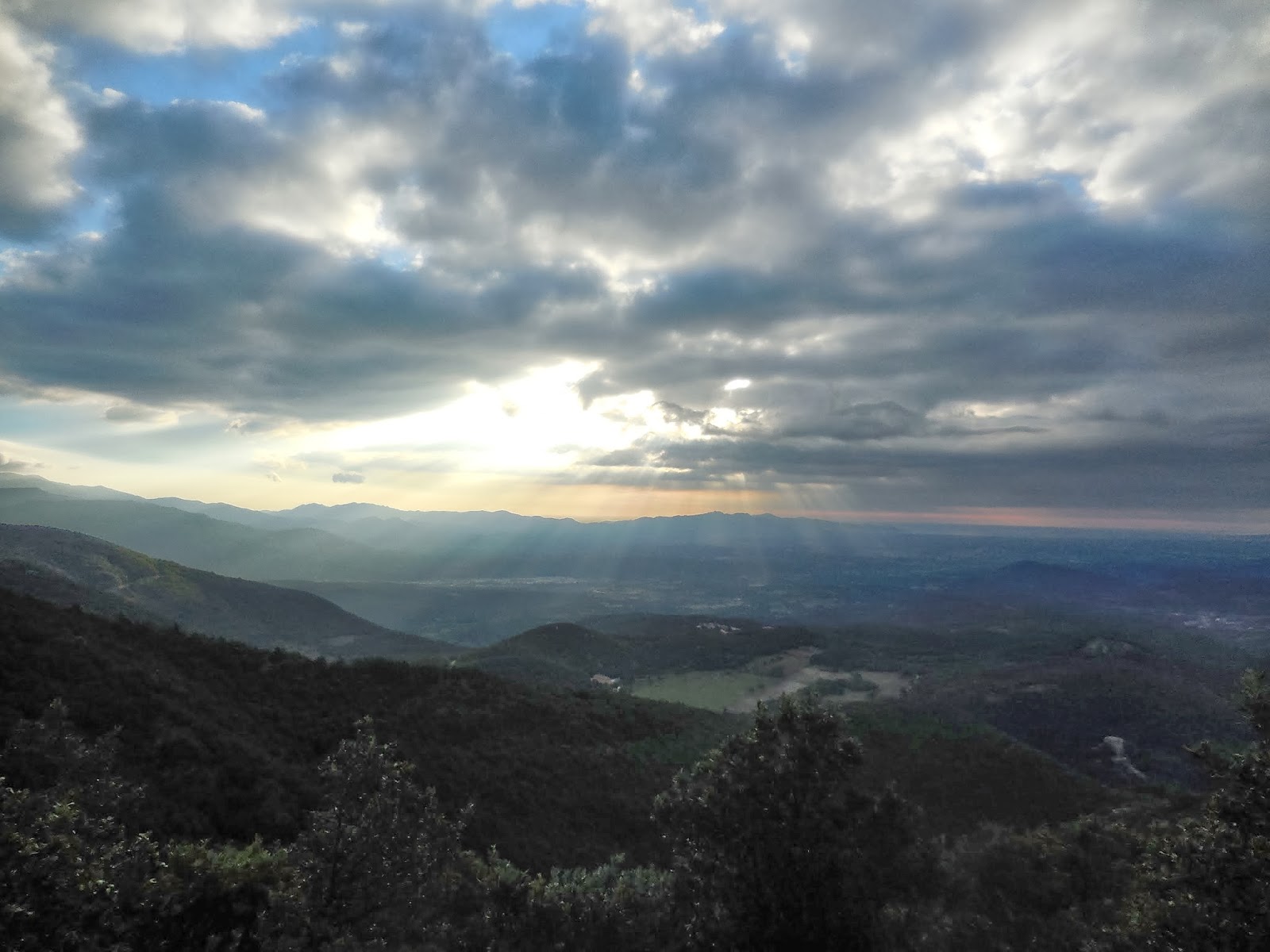 Så här slutade det hela för att göra en lång historia kort som man säger. 10 km längre och 600 höjdmeter extra att gå.. Det efter att ha frågat en familj hur jag skulle komma på rätt bana igen. Dem förklarade bra. Så jag följde stigar och vägar som inte finns med på min karta tills jag till sist kom ut till en markerad väg. Följde den upp till Coll del Ric, 961 möh, där den gick ihop med leden som jag tänkt ta från början.