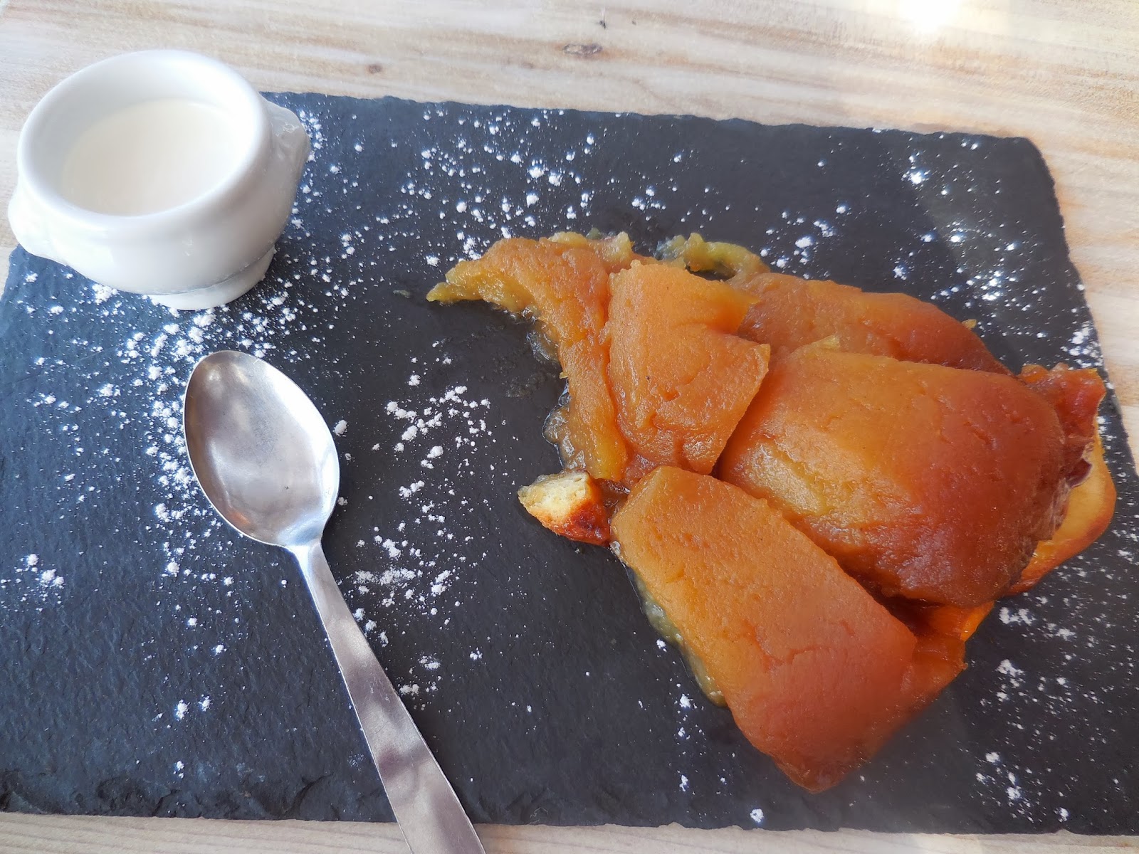 Började att gå mot Gite D’etape vid Col de l’Ouillat. Efter gårdagens vandring var förväntningarna om vad som komma skulle inte särskilt höga. Men stigen var överraskande bra! Där stannade för en fika. Chokladkaka, varm choklad och sen en äppelpaj (tarte tatin) på det. Får nog inte fortsätta på det viset när jag kommer hem 😉