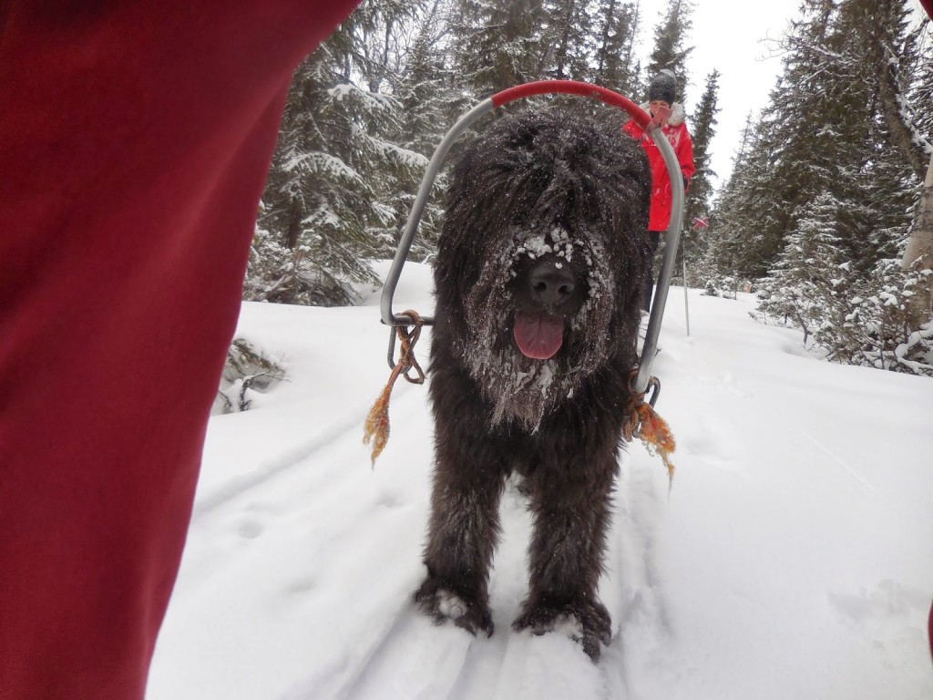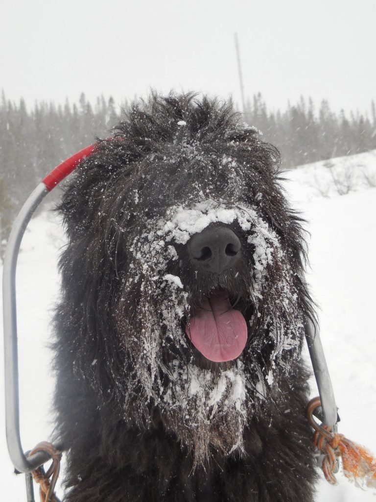 Precis som igår har det både snöat och blåst. Två härliga timmar var vi ute. I morgon hoppas vi på att ta oss upp till Blåhammaren för att äta lunch 🙂