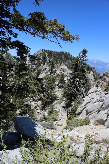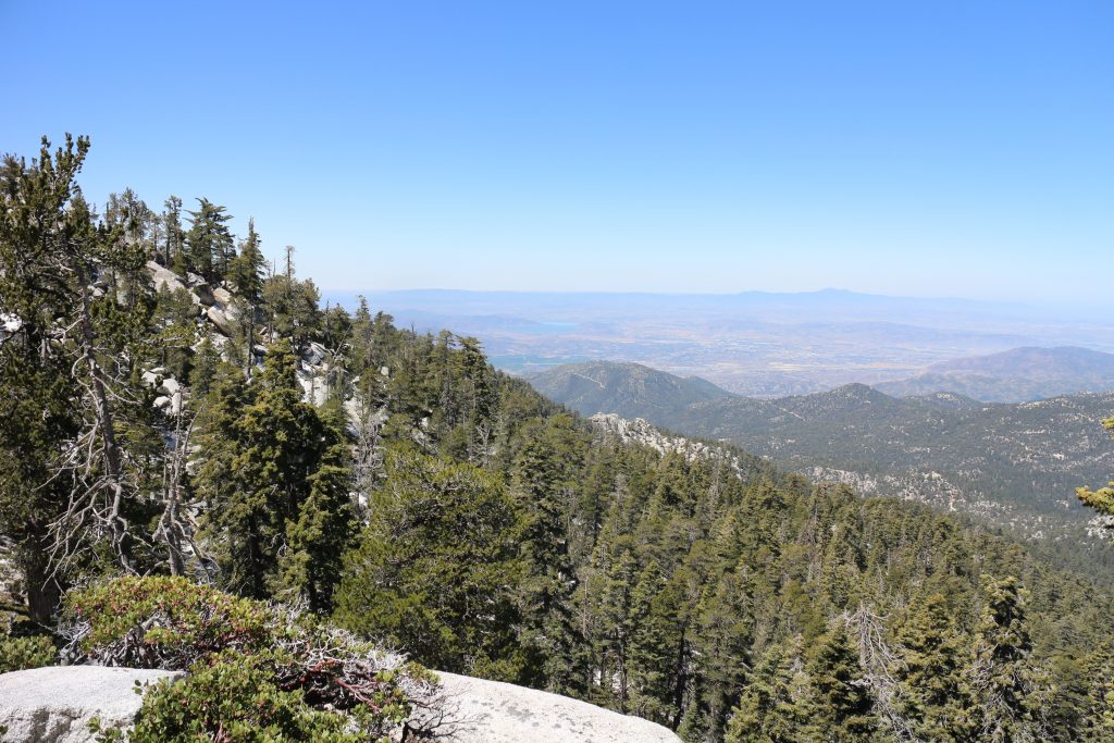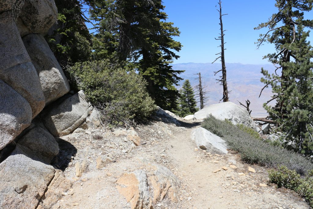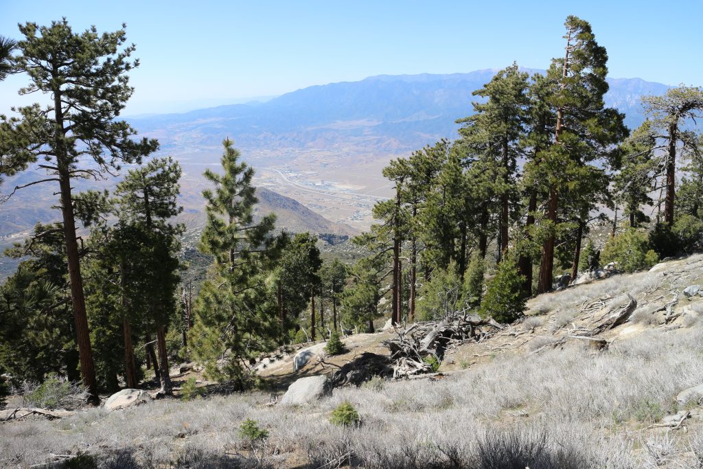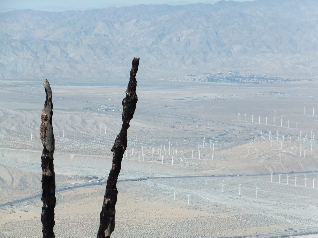 Vi gick aldrig upp på San Jacinto peak, (ca 3300 möh) utan fortsatte vår vandring nedåt mot låglandet istället. Vi gjorde en stor tabbe med att inte ta mer vatten från den sista bäcken vi passerade på högre höjd. Vi hade förlitat oss på en bäck längre ner som det enligt vår guidebok skulle finnas vatten i, men den var helt snustorr. Ju längre ner vi kommer desto varmare blir det och det börjar kännas kritiskt med den lilla vattenmängden vi har och vi blir allt mer törstiga. Vi känner av vattennöd för första gången. Som tur var får vi totalt 3 liter vatten från andra vandrare som vi snålar på resten av vägen då platsen vi tältade på är 15 km från närmaste vatten. En sträcka som är känd för att kunna bli riktigt varm.