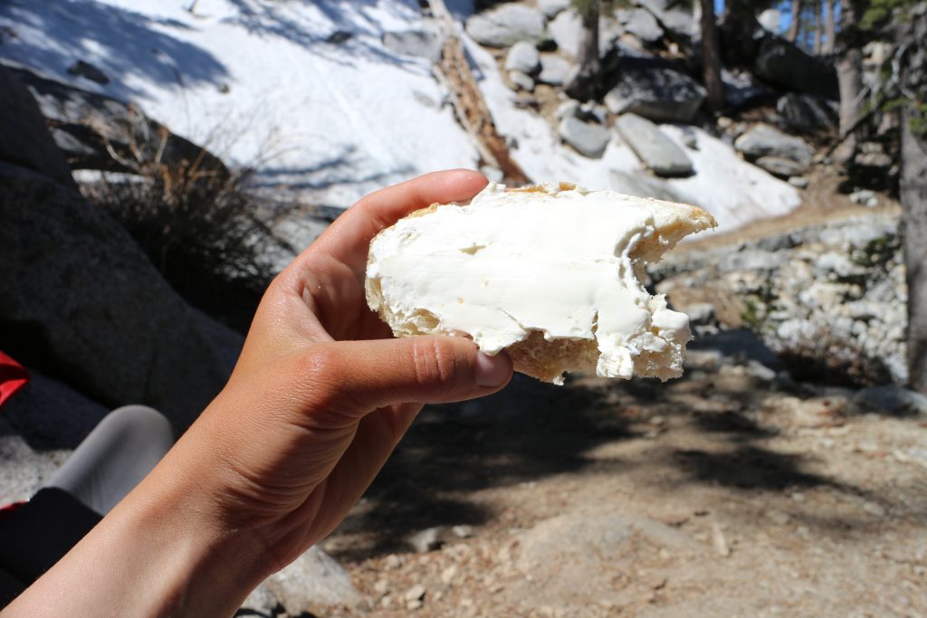 Vid en av alla bäckar vi passerad passade vi på att lyxfika, bröd och ost som vi köpte igår i Idyllwild.