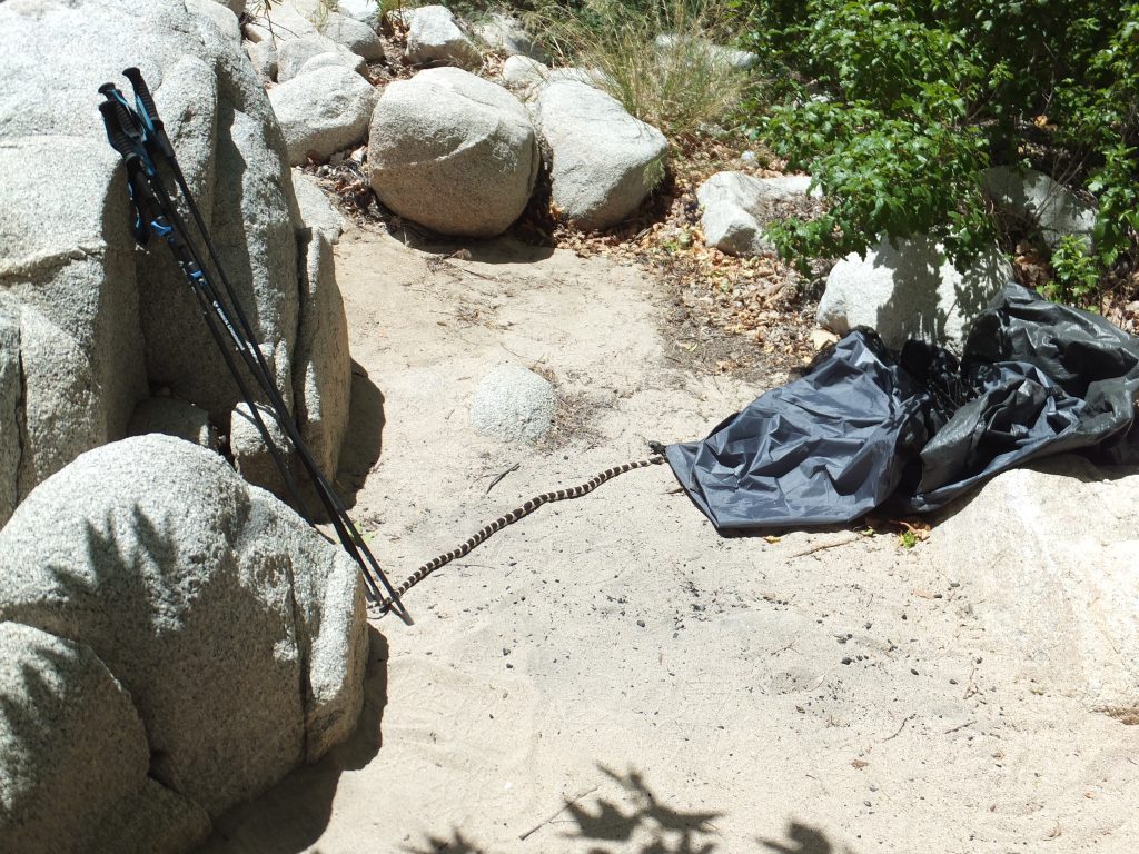 Vi fortsätter vår vandringen genom Deep Creek på eftermiddagen. Henrik har då börjat att känna sig mycket bättre. Medan vi packar ihop tältet kommer en lång, svartvit smal orm ringlandes förbi just där vi haft tältet tidigare. Den var en art vi inte tidigare sett, den verkade söka sig mot bäcken.