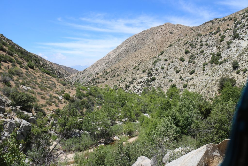 Vi kommer ut ur dalgången vid en stor fördämning. Strax efter den korsar vi vattnet Deep Creek. Turens första vad. Så himla skönt att få svalka fötterna! När vi kommit över på andra sidan lagar vi lunch och tar sen en länge paus innan vi går vidare mot nästa vatten, Grass Valley Creek.