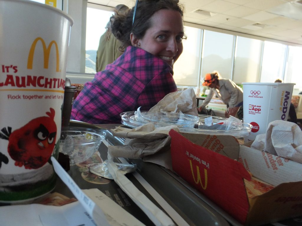 Vi äter middag på donken, inte samma meny som hemma, inte ett enda vegetariskt alternativ. Många vandrare är där och frossar, dom allra flesta beställer in burgare efter burgare och några milkshakes på det. Alla har drabbats av ”hiker hunger”.