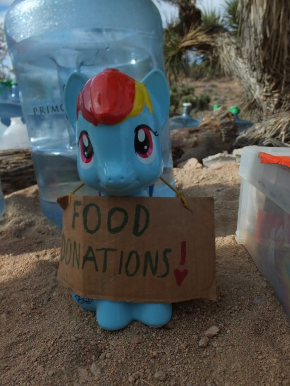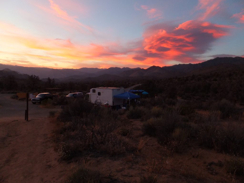 Framme på campingen bjuds vi på pasta med sallad och salsa samt obligatorisk rootbeer med glass plus körsbärspaj. Under partytältet utanför husbilen sitter även en annan trail angel, Meadow Ed. Han medverkade i filmen Wild och har även träffat Cheryl som skrivit boken när hon gick 1995. han gav henne en ihopfällbar såg då.