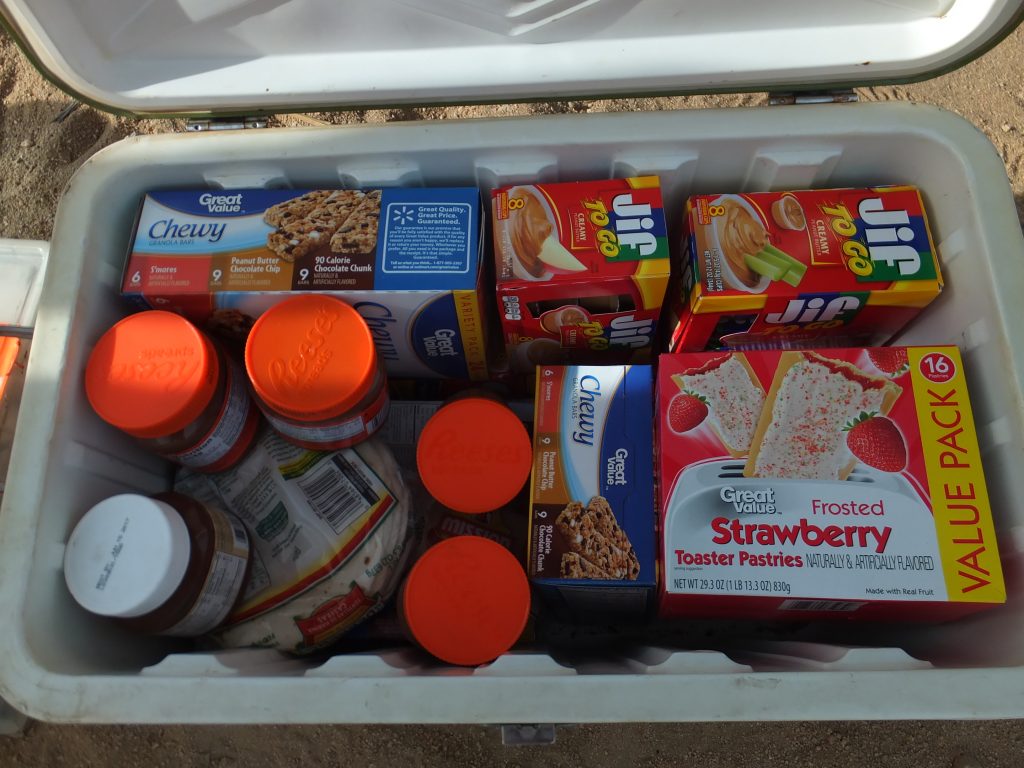 Vi kommer iväg strax efter kl. 8. Tog lite sovmorgon efter den sena dagen igår. Jag köpte lite smått och gott från trailmagicboxen, som en kille som kallar sig för Devilsfish har ordnat med. Det är även han som står bakom vattencachen.