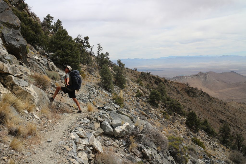Vi lämnar campingplatsen på morgonen efter att ha filtrerar småäckligt vatten från en betongdamm och går uppåt mot Mount Jenkin, över 7700 feet in i mellersta Kalifornien. Vi går aldrig upp på toppen, vår högsta punkt landar på ca 7000 feet.