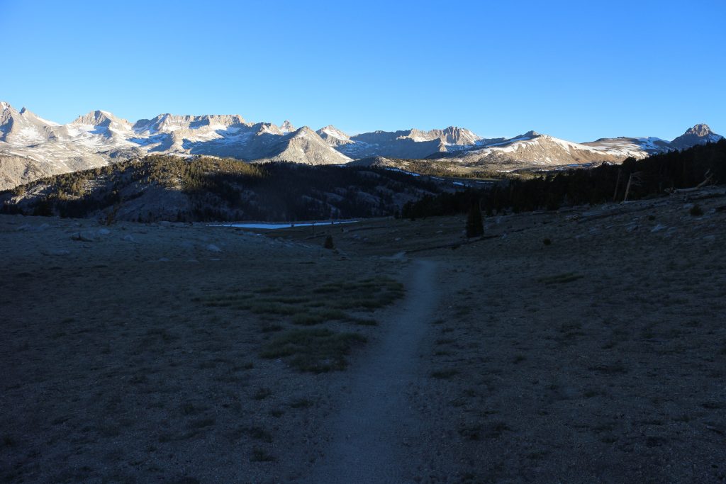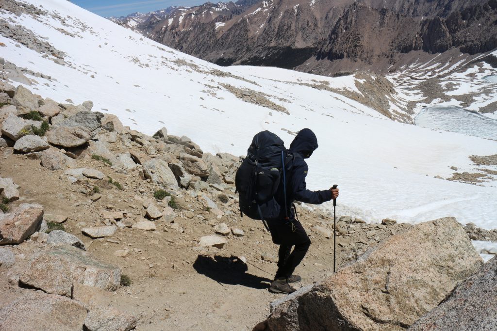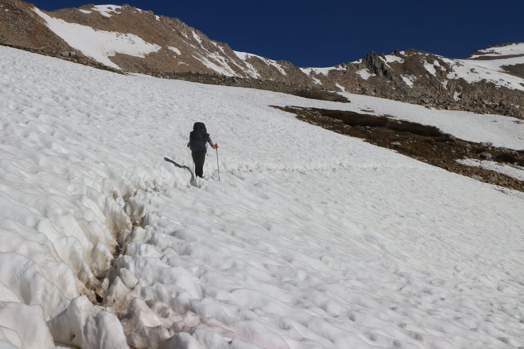 Klockan ringer 03.30. Sov dåligt men vi kör på effektivt. Snart fullmåne. Kanske därför den ytliga sömmen? Forester pass på 4009 möh är ett dramatiskt pass med branta sluttningar. Det är också PCTs högsta punkt. En hel del snö kvar, därför ville vi gå dom 9.4 milesen innan solen haft för stor inverkan.