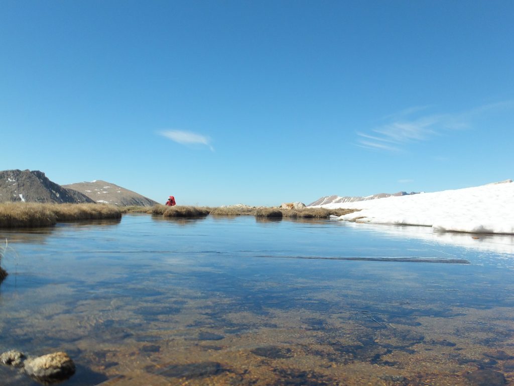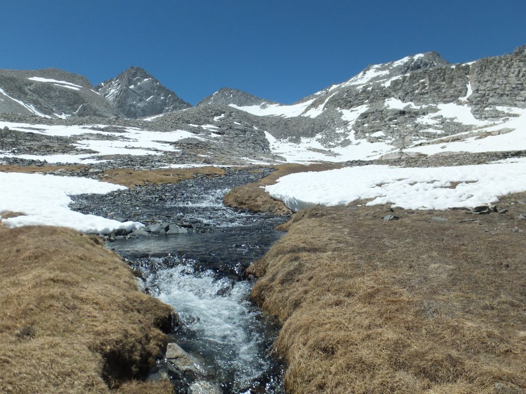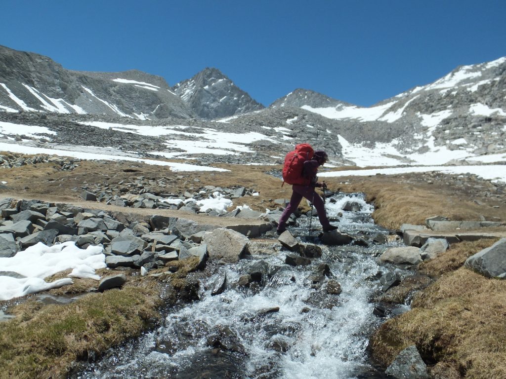 Börjar vandring, pannlampsgång, med iskallt vad. Vandringen går stadigt uppför i tall/cederskog med inslag av ängsmarker där tillsynes orädda betande hjortar sågs på nära håll. Som så många andra dagar bjuder även denna dag på klarblå himmel och sol. Sista kilometrarna innan passet går över trädgränsen där vi vandrar i en stor dalgång som avslutas med kägla med istäckta sjöar omringade av höga berg. Mycket vackert!