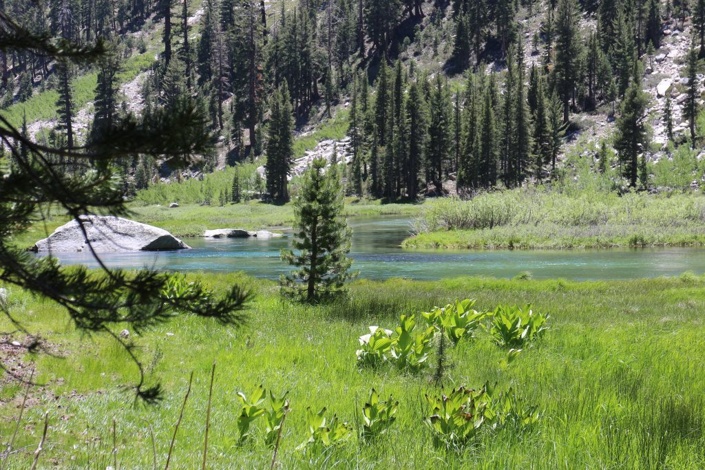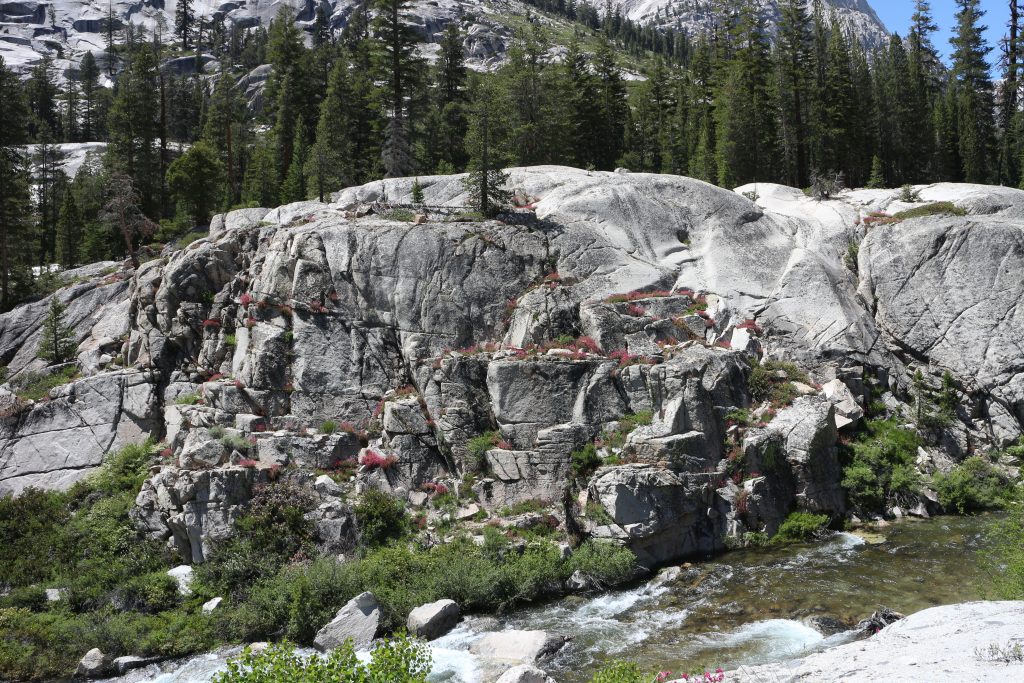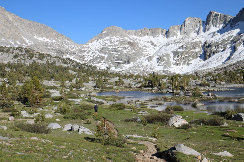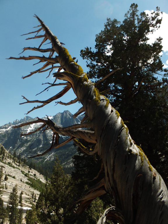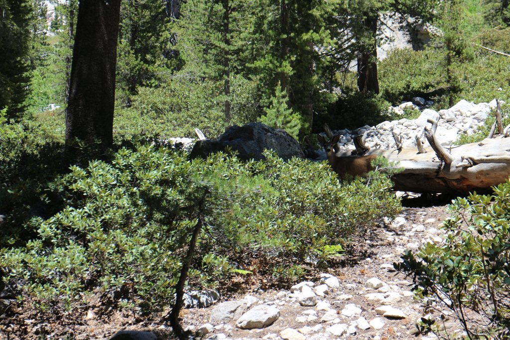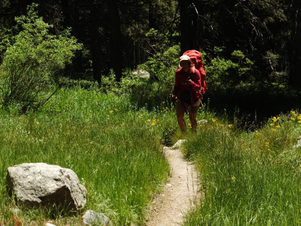 Lunchar strax efter att det vänder och börjar gå uppåt igen. Bishop pass Trail junction, 5,5 km bort blir nästa delmål. Möter en trevlig ranger. Följer ett annat vattendrag/fors uppströms och viker av på bishop pass Trail i närheten av ranger station.