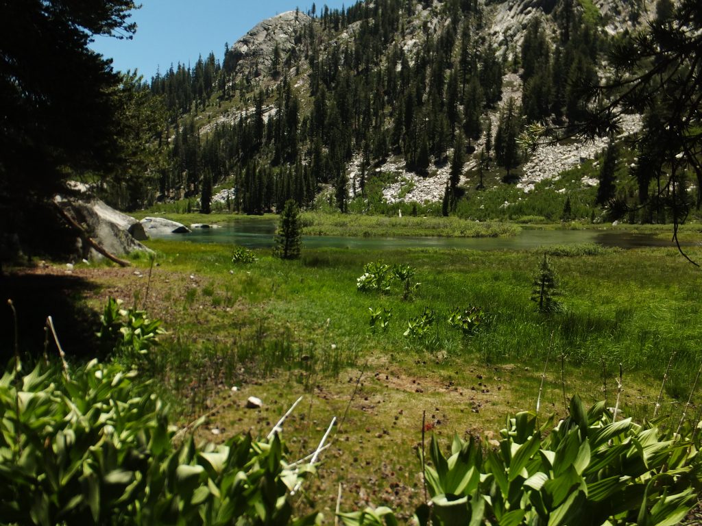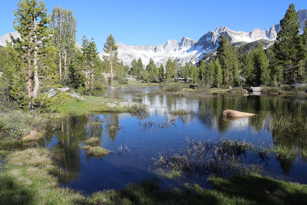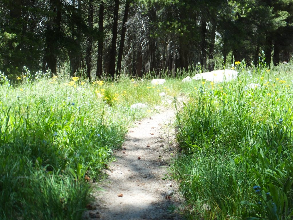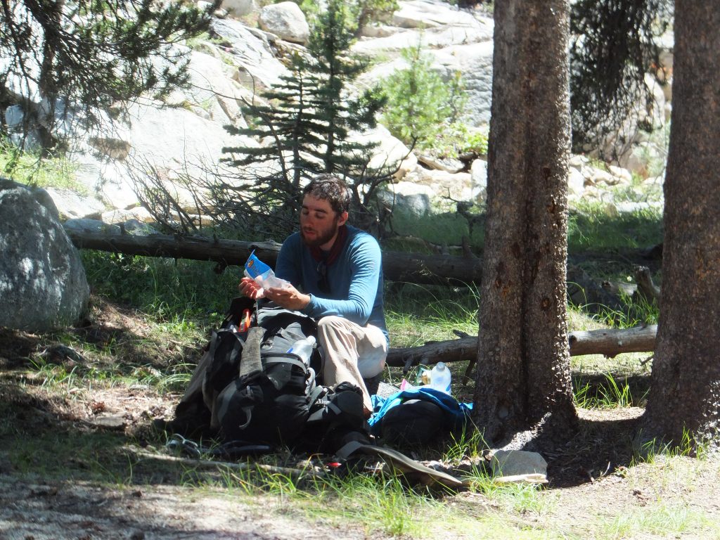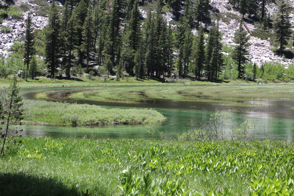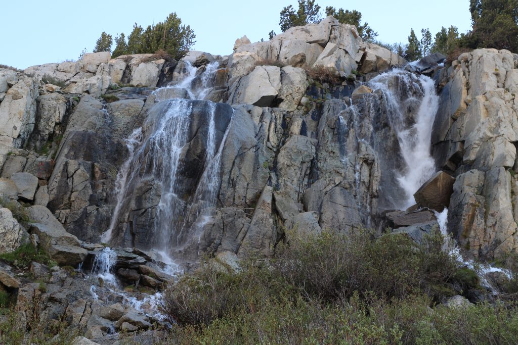 Lunchar strax efter att det vänder och börjar gå uppåt igen. Bishop pass Trail junction, 5,5 km bort blir nästa delmål. Möter en trevlig ranger. Följer ett annat vattendrag/fors uppströms och viker av på bishop pass Trail i närheten av ranger station.