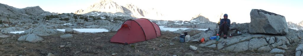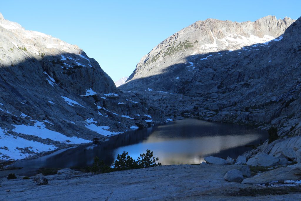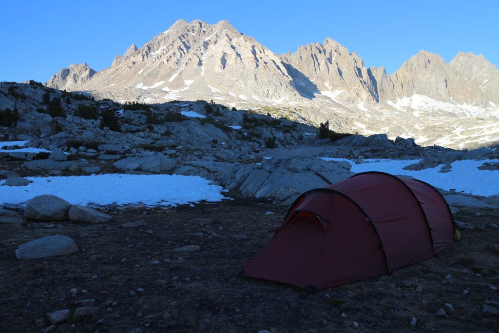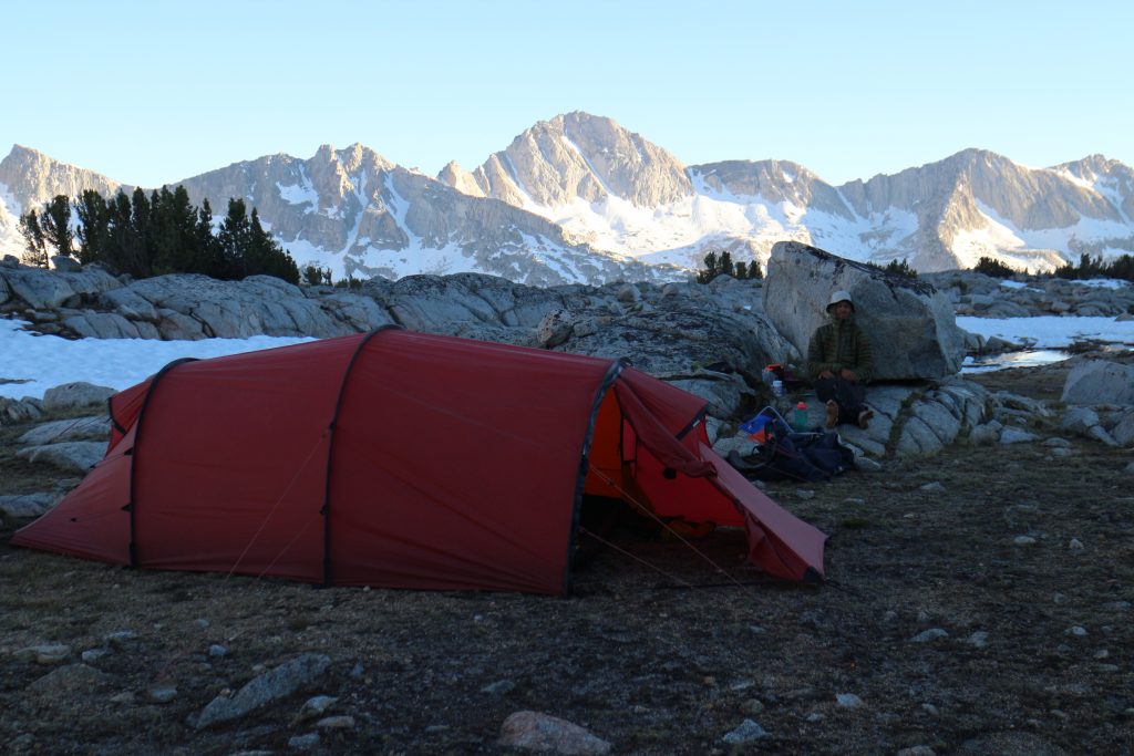 Vi tältar på 3460 möh, just innan bishop pass. Är på väg till Bishop för att omproviantera.