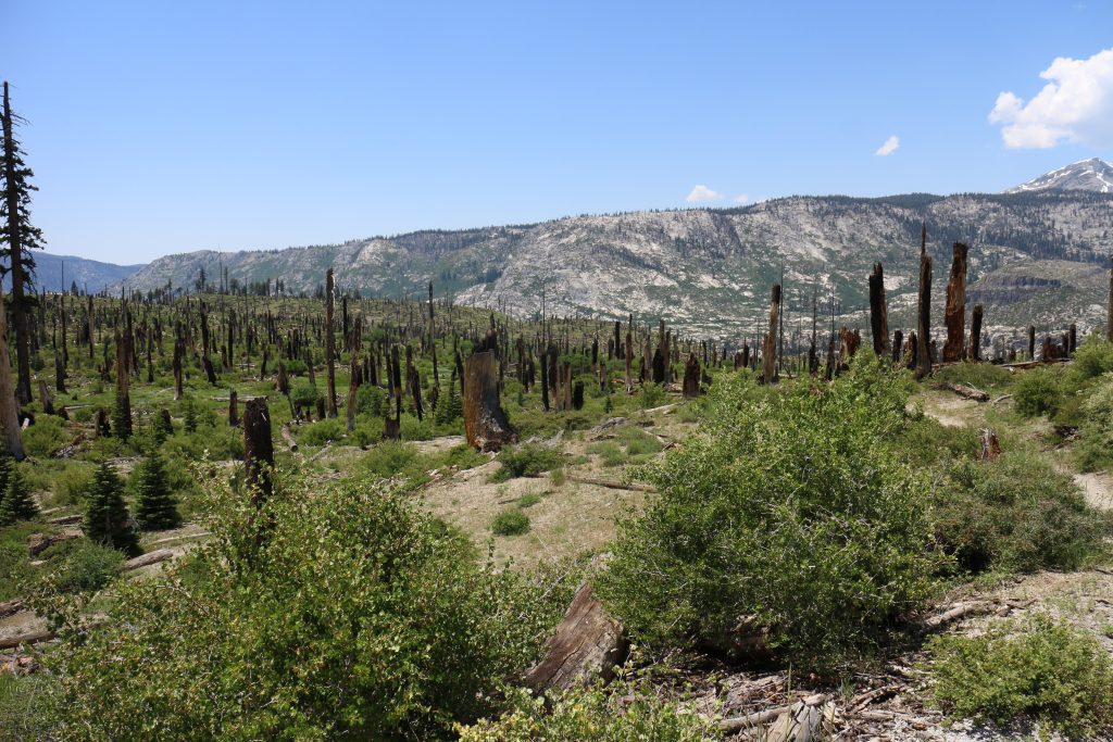 Med lättare ryggsäckar mot på länge börjar vi vår vandring mot Red’s Meadow. Vandringen gick genom barrskog hela dagen. Vi gick även genom något som kändes som en stor trädkyrkogård. Ett stort område med liggande furor och dom som ännu stod var knäckta på mitten. -Rester från en skogsbrand för länge sedan.