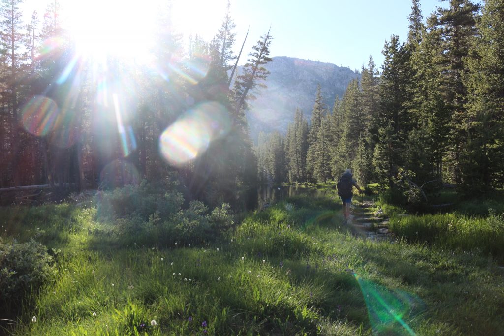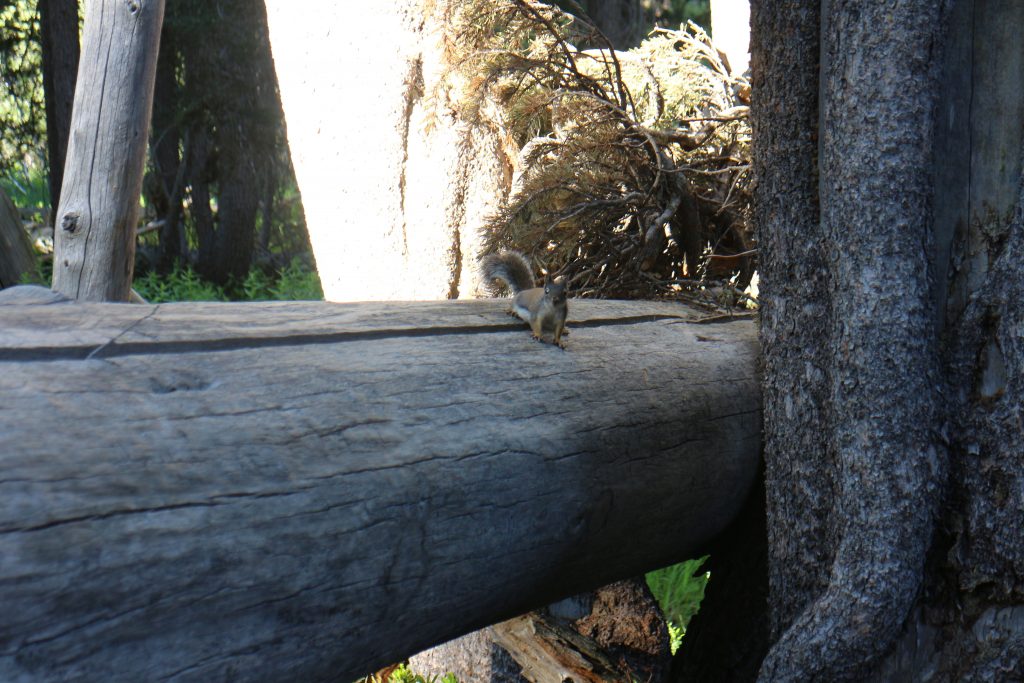 Vi tältar tillsammans med flera andra vandrare intill sjö och vattendrag, äkta myggland. Medan vi lagar vår middag hör vi ett rådjur skrika. Först trodde vi att det var någon form av fågel. Men snart blev vi varse om vad det var och varför det skrek. Plötsligt ser vi rådjuret springa och en björn i full galopp efter det. Några av dom andra vandrarna får se björnen fälla kidet och sen släpa det upp för hällarna.