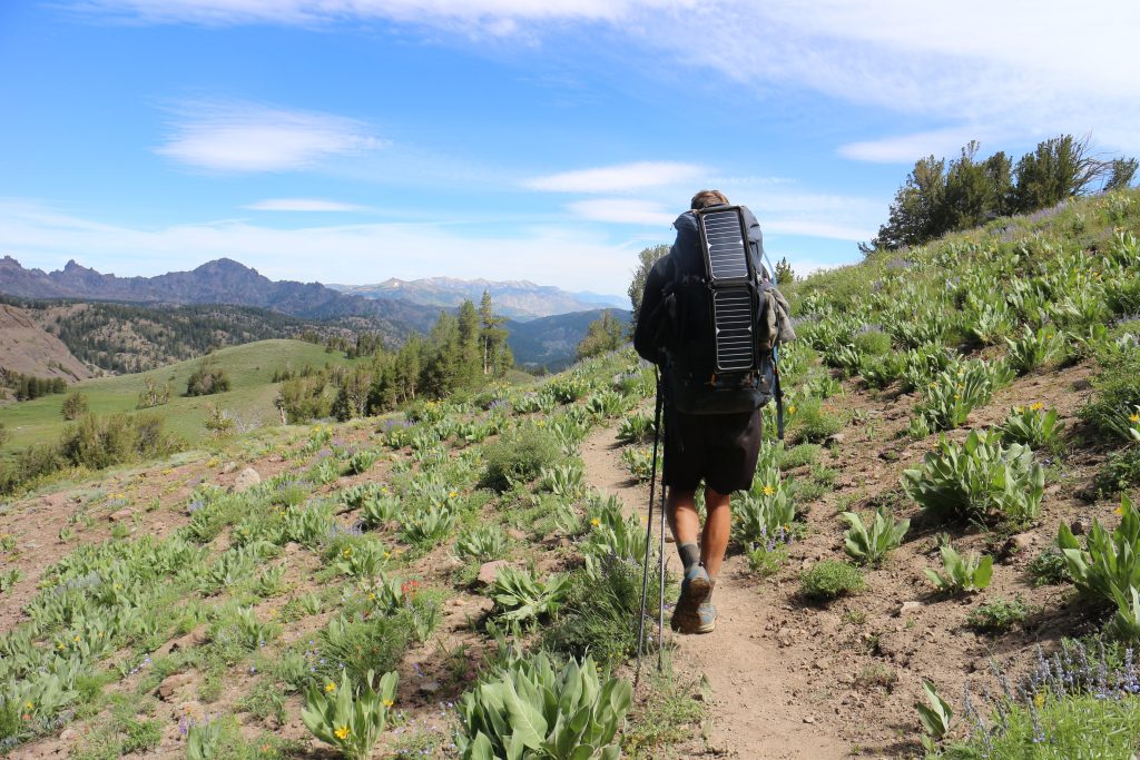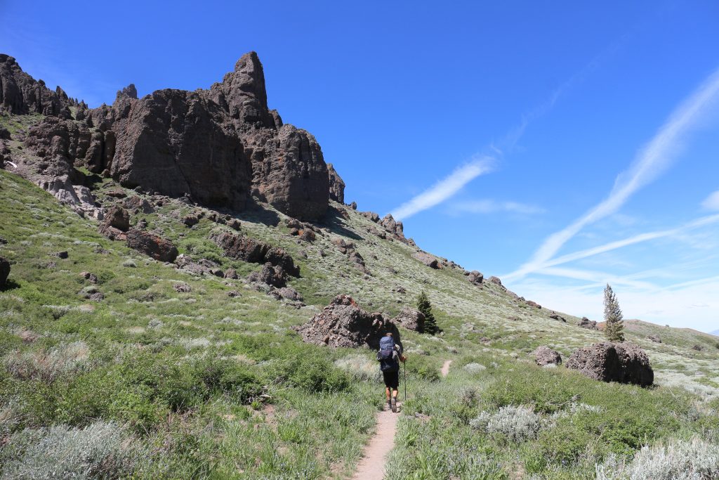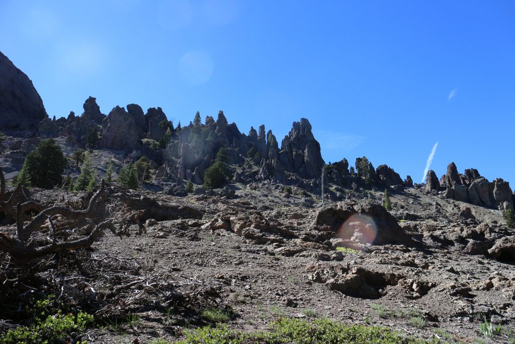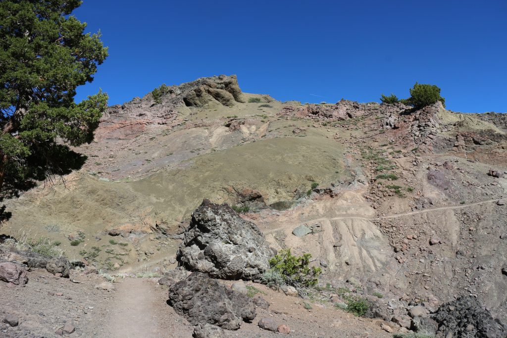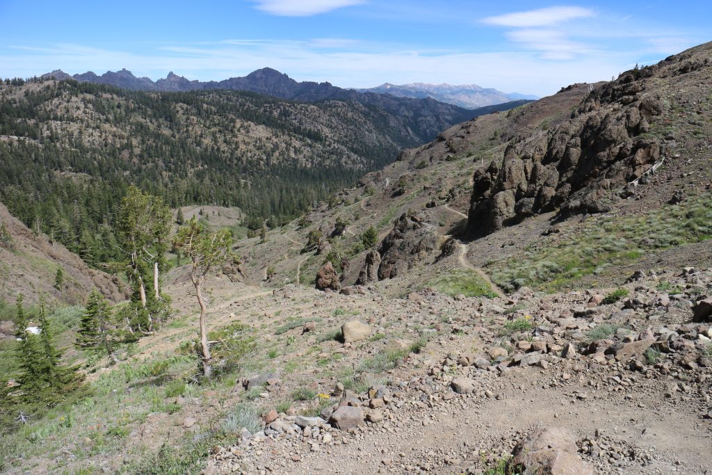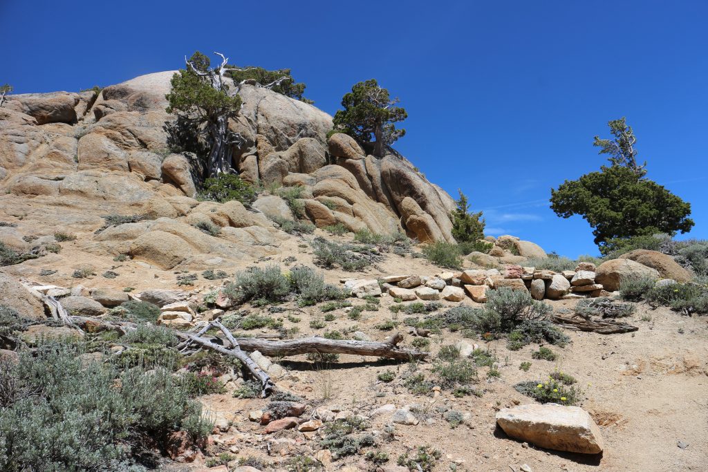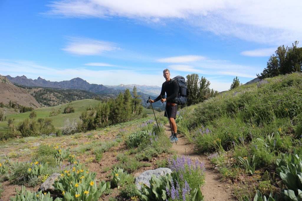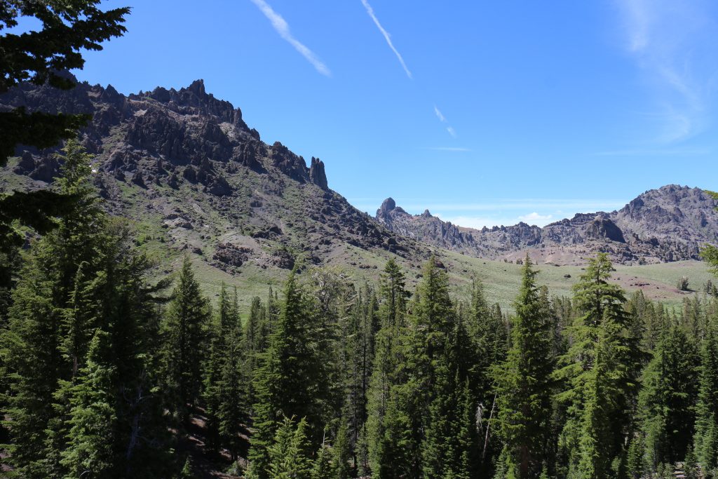 Gran och tall, fåglar, blommor i olika färger, ängsmarker, öppna små gläntor, en och annan sjö, mindre snöpartier, partier med storskog med brun, torr, kådadoftande barrmatta under kronorna. Rätt så kuperat och varierat, precis som igår. Vacker växlande natur. Kullar, berg, vilda western klippor.