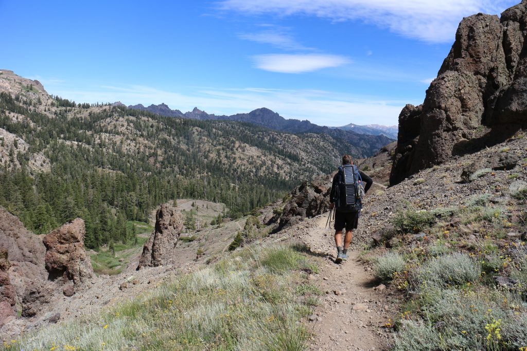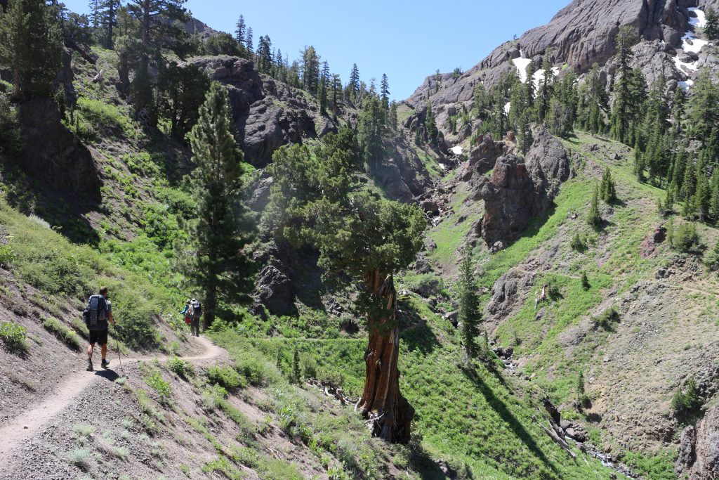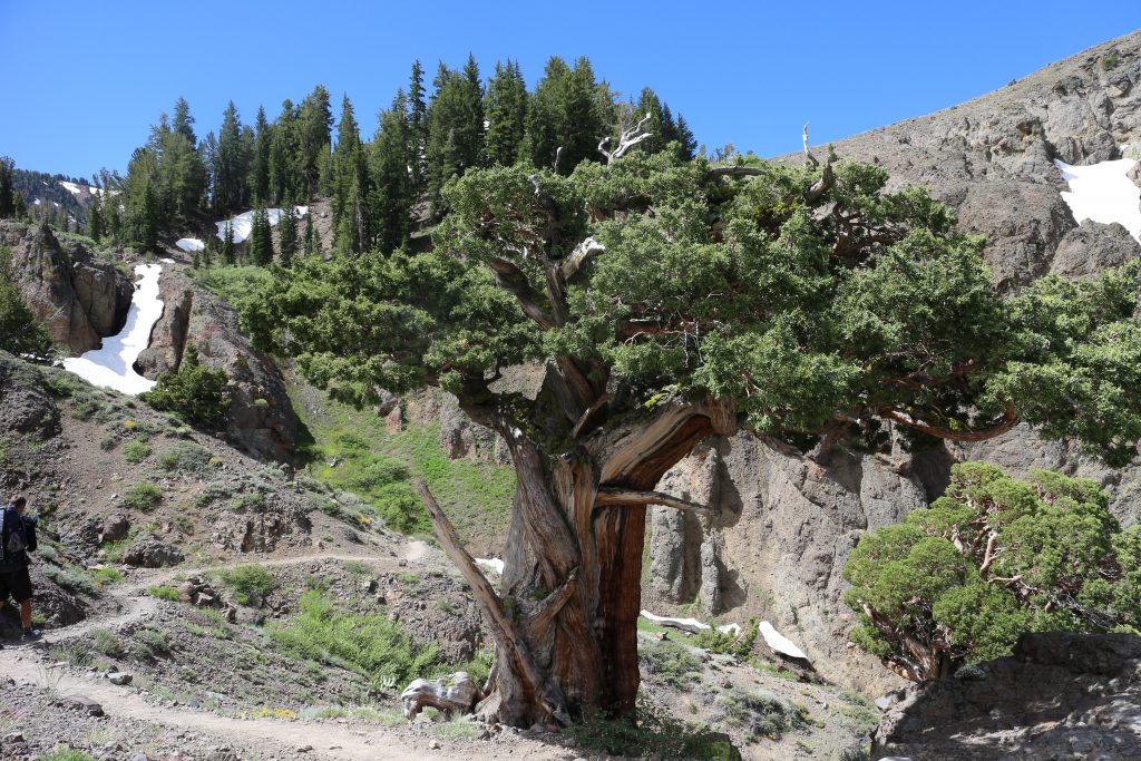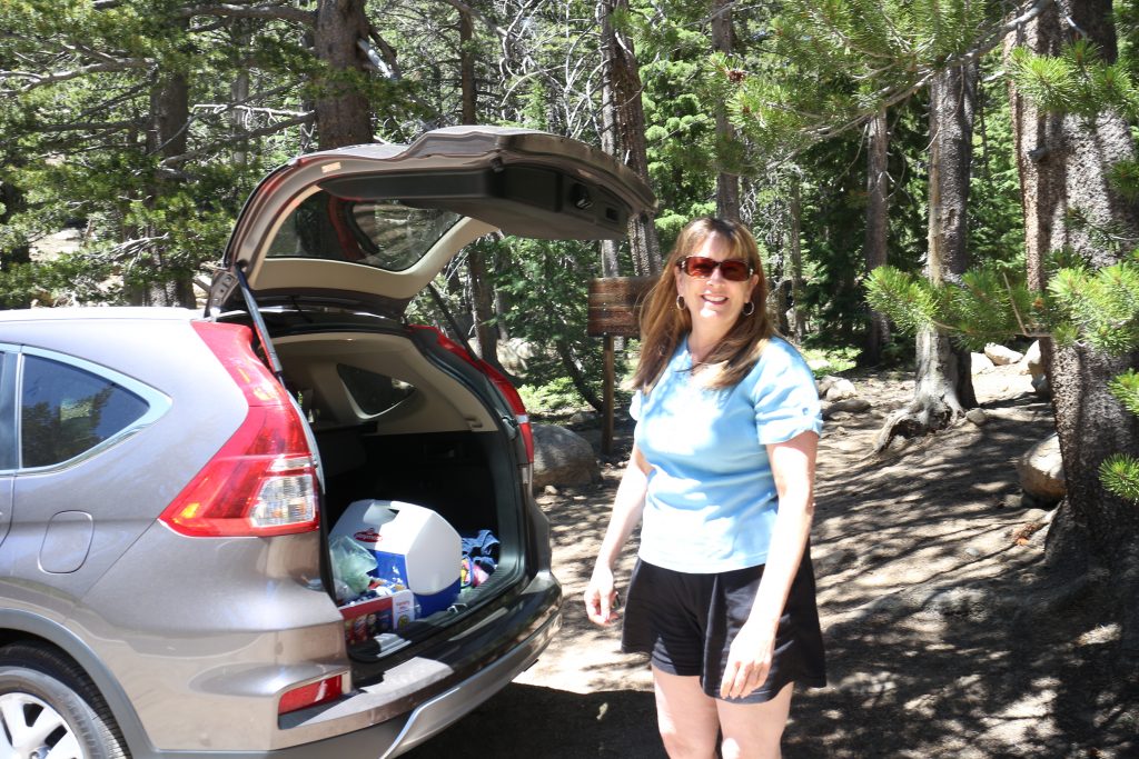 Efter att vi gått 21 km bestämmer vi oss för att ta lunch vid Highway 4. Henrik gick lite före mig och hade satt sig i skuggan på andra sidan vägen. Just som jag ska gå över vägen kommer en kvinna körandes oss stannar och frågar om jag vill ha chips, frukt och läsk. Hon stannar bilen och plockar fram alla godsaker. Ta så mycket ni vill ha uppmanar hon oss. Hon hade tänkt att dela ut allt igår samtidigt som hon hämtade upp sin syster som vandrar PCT, men då dök inga andra vandrare upp så nu ville hon dela ut allt idag istället när hon passerade igen på väg hem till sig igen. Vilken osannolik tur vi har!